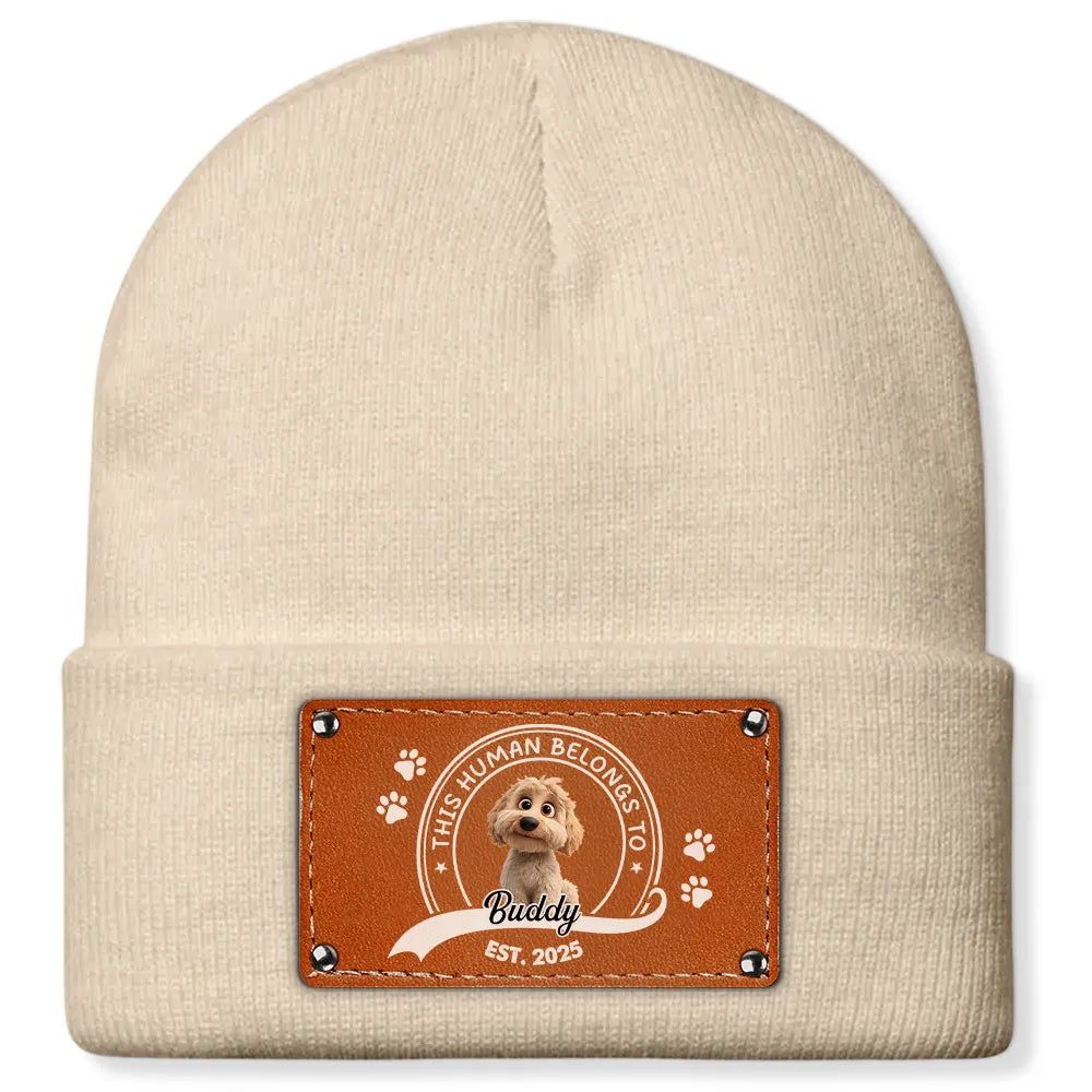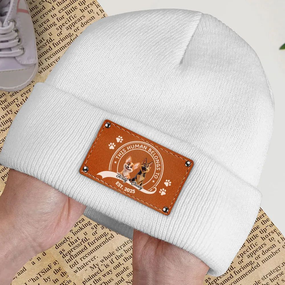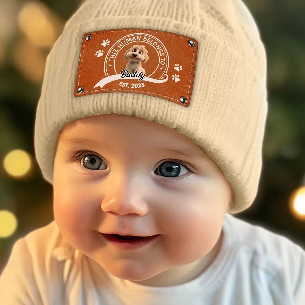 Leather Patch Beanie Hat with Dog Design, Cozy Warmth and Perfect Gift for Pet-Loving Families