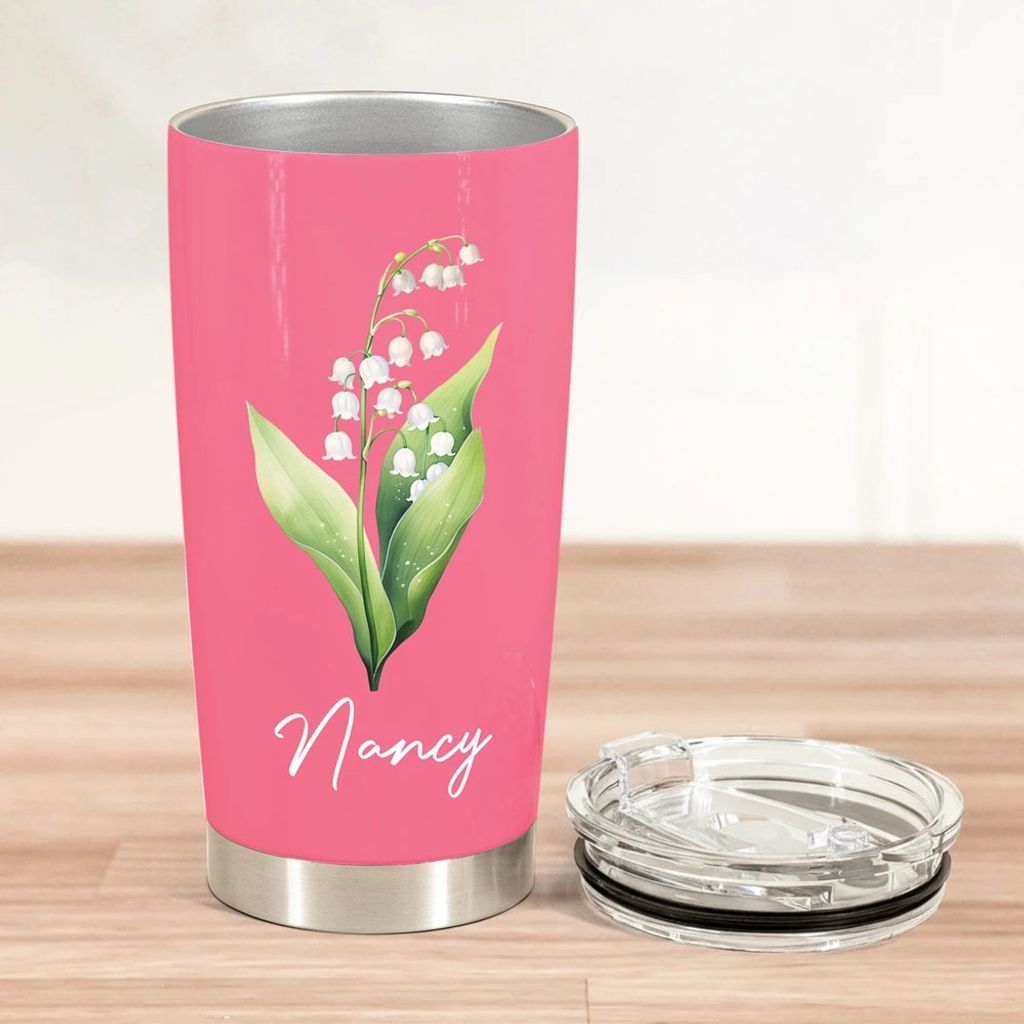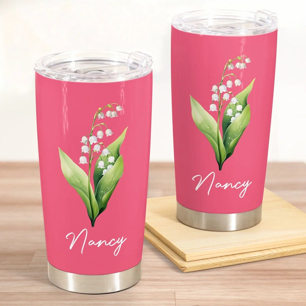 Personalized Birth Flower Insulated Travel Tumbler with Name Cute Floral Gift for Friends Coworkers Sisters Daughters