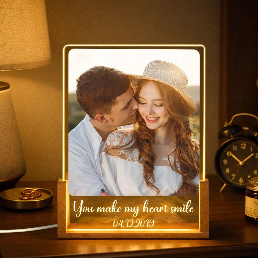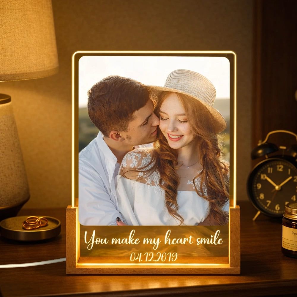 You Make My Heart Smile Personalized LED Light Frame - Romantic Photo Keepsake With Cozy Ambient Light, Creative Gift