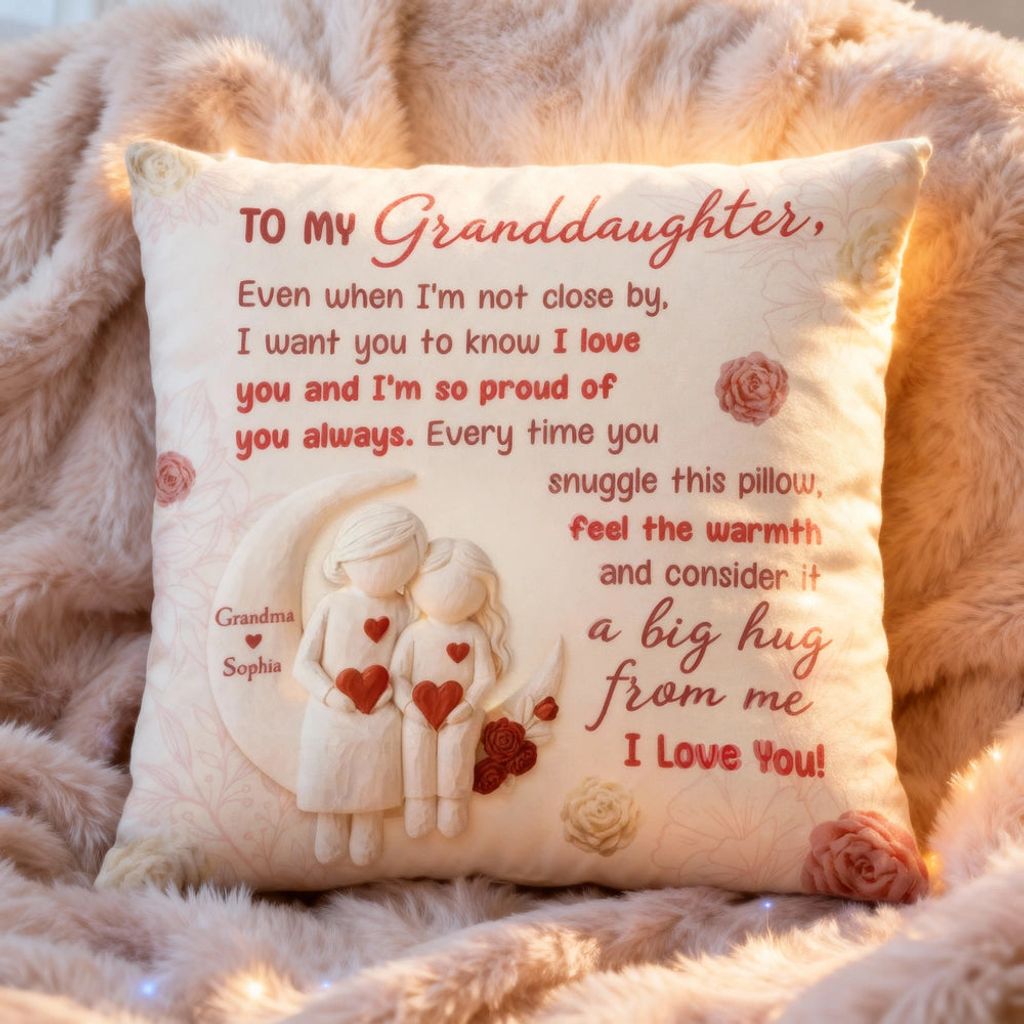 This personalized Square Pillow turns your love into something she can hold onto every day. A unique, creative gift made just for your granddaughter.