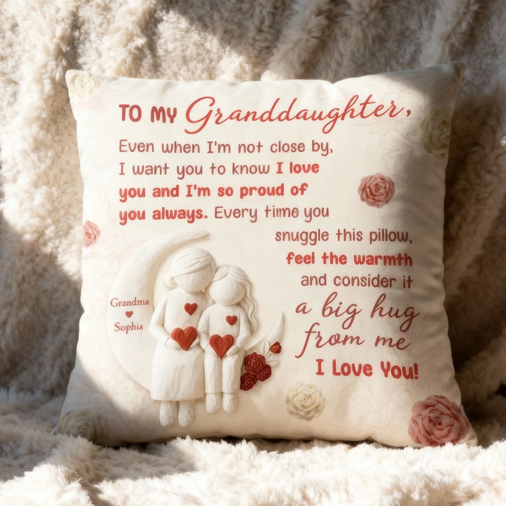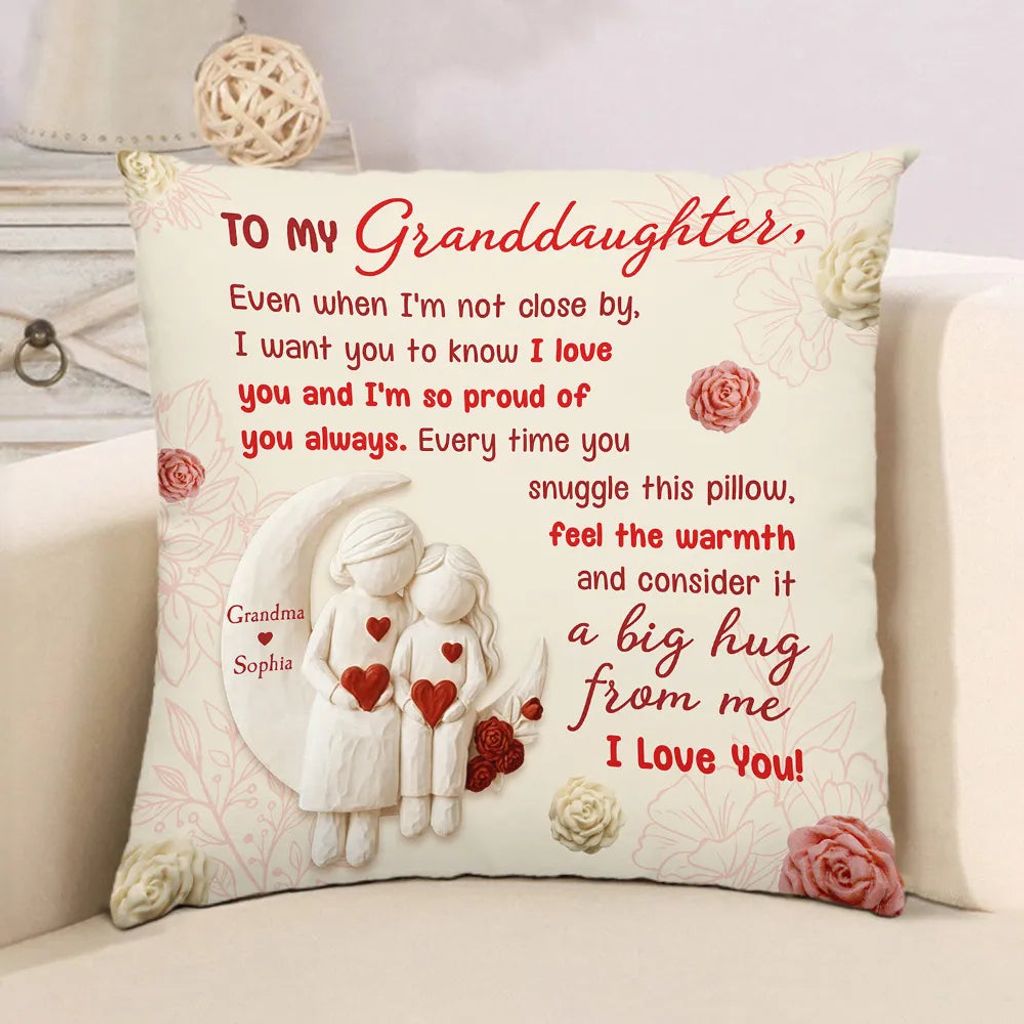 Personalized Square Pillow Grandmother and Granddaughter Hug Quote, I Want You to Know I Love You, Unique Gift