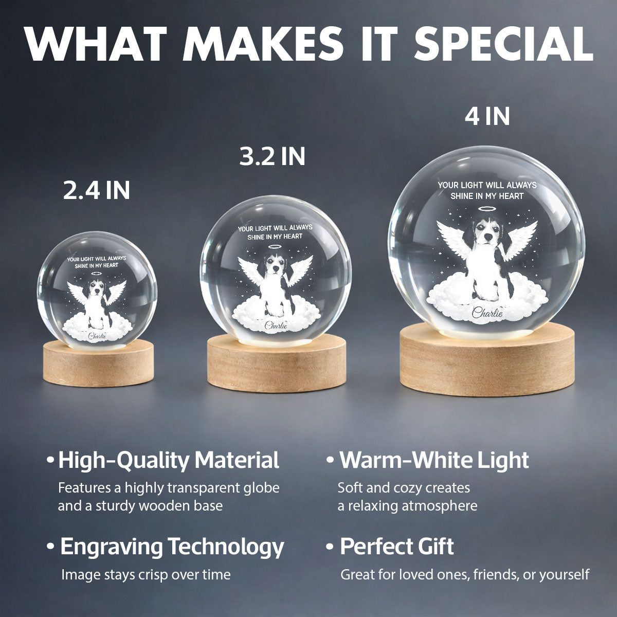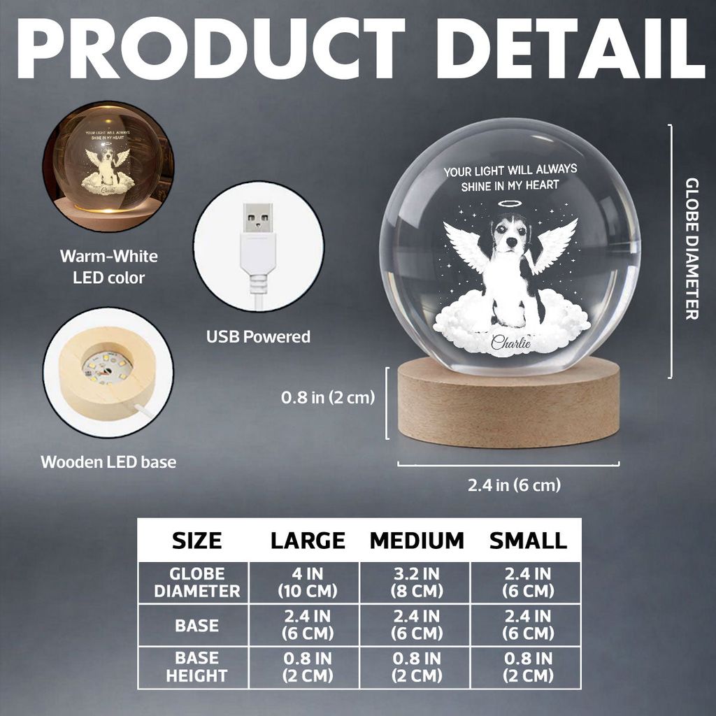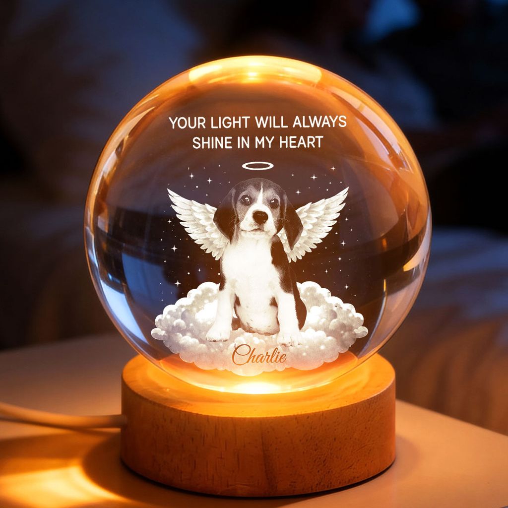 A personalized Crystal Ball LED Night Light that keeps your pet's memory close. The soft, warm glow feels like a quiet reminder that their love is still with you.