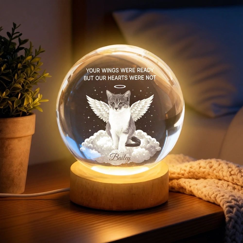 Personalized Crystal Ball LED Night Light Pet Memorial Gift, Angel Wings Quote, Warm Glow Bedside Keepsake