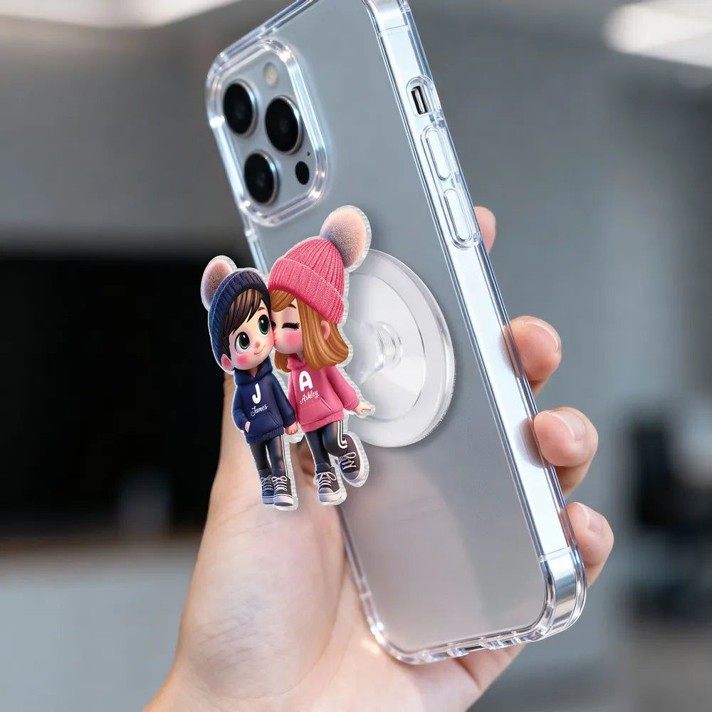Kissing Couple Acrylic Magnetic Phone Grip, Personalized Cute Cartoon Style, Sweet Everyday Reminder, Unique Gift for Couples