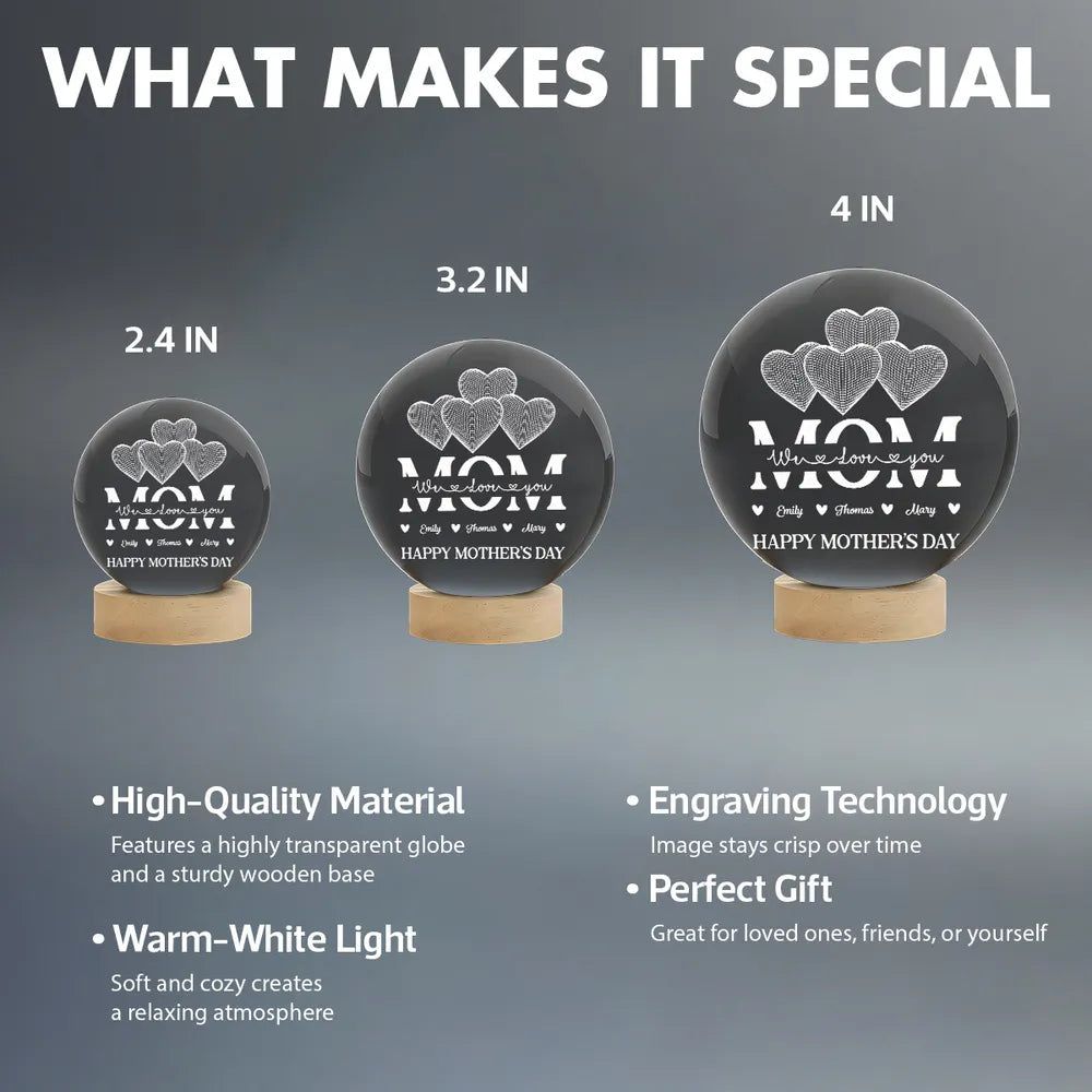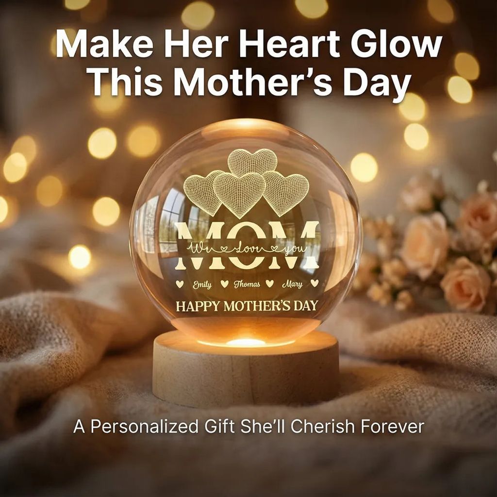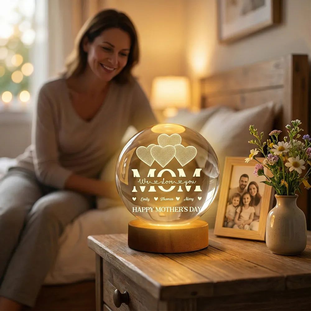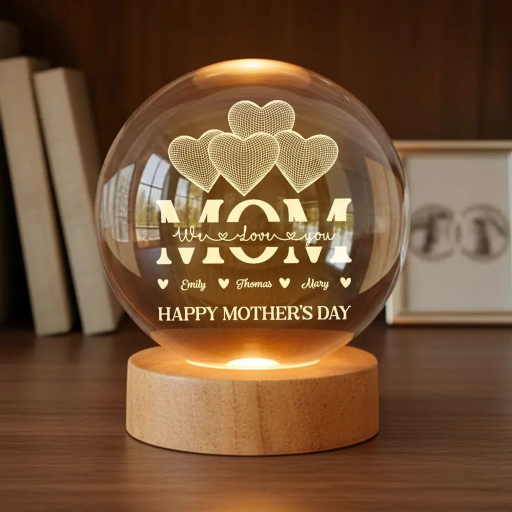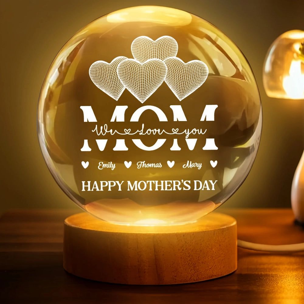 3-Color K5 Globe Lamp Personalized Mom Heart Night Light, Warm Glow Mother's Day Gift for Mom