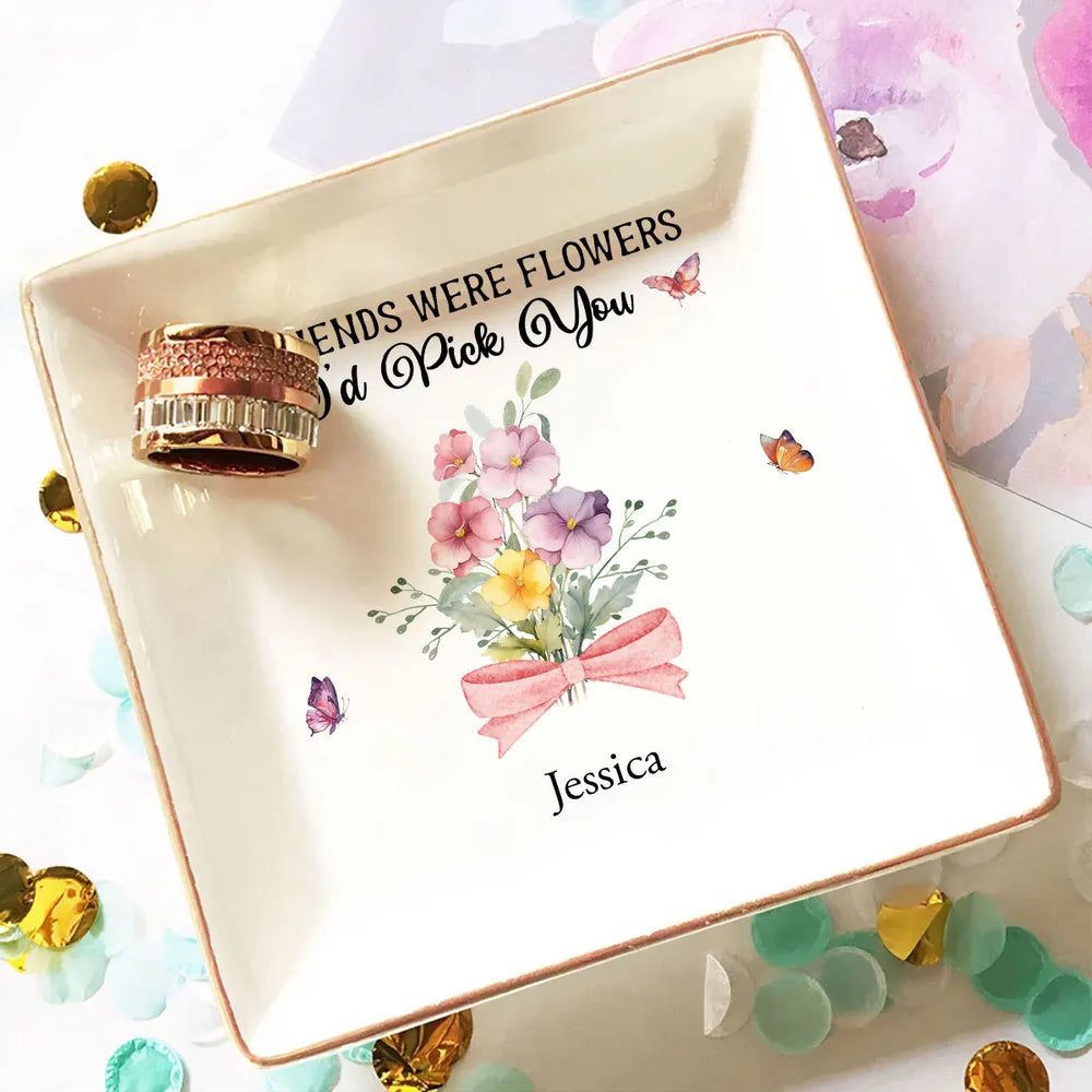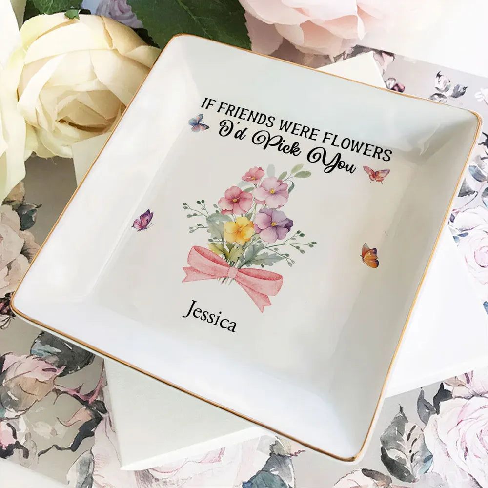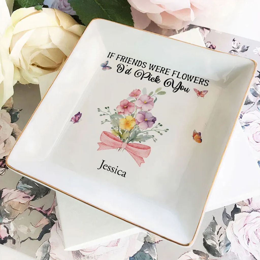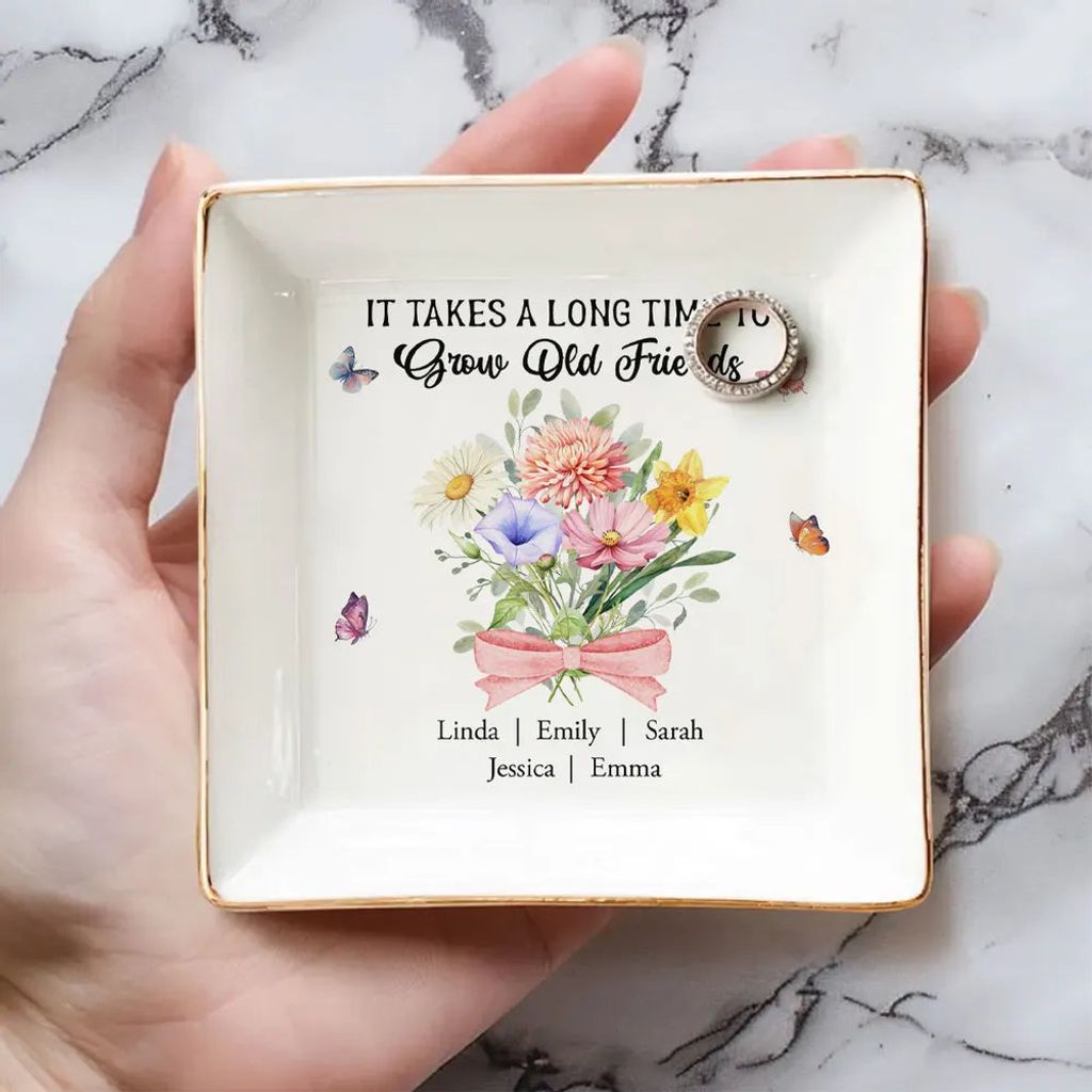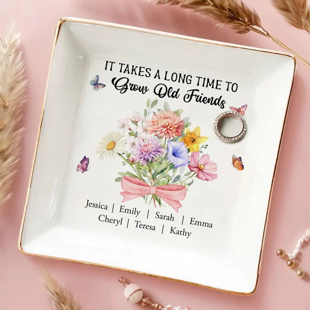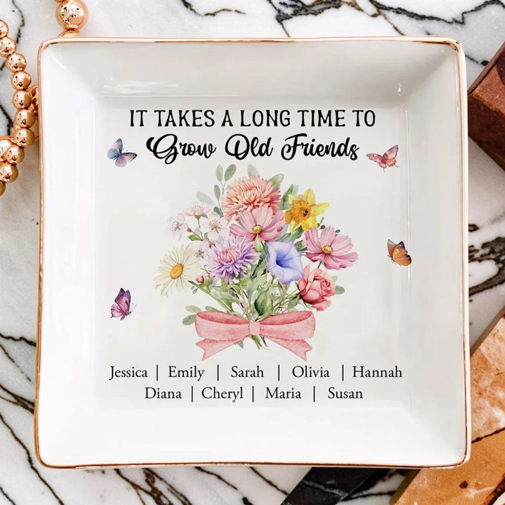 Personalized Friendship Jewelry Dish, Old Friends Floral Quote Vanity Decor, Unique Gift for Best Friend