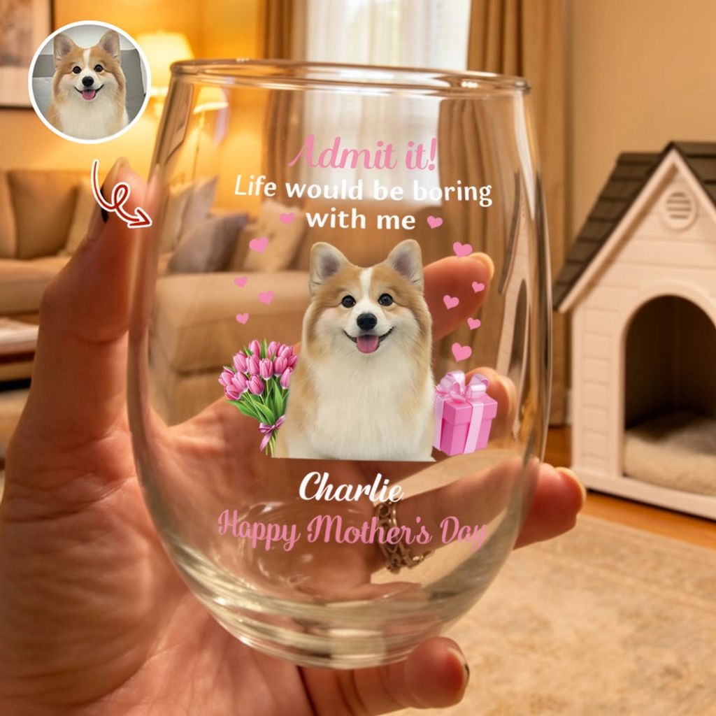 Personalized Pet Photo Wine Glass Admit It Life Would Be Boring With Me Cute Mother's Day Gift for Dog Moms