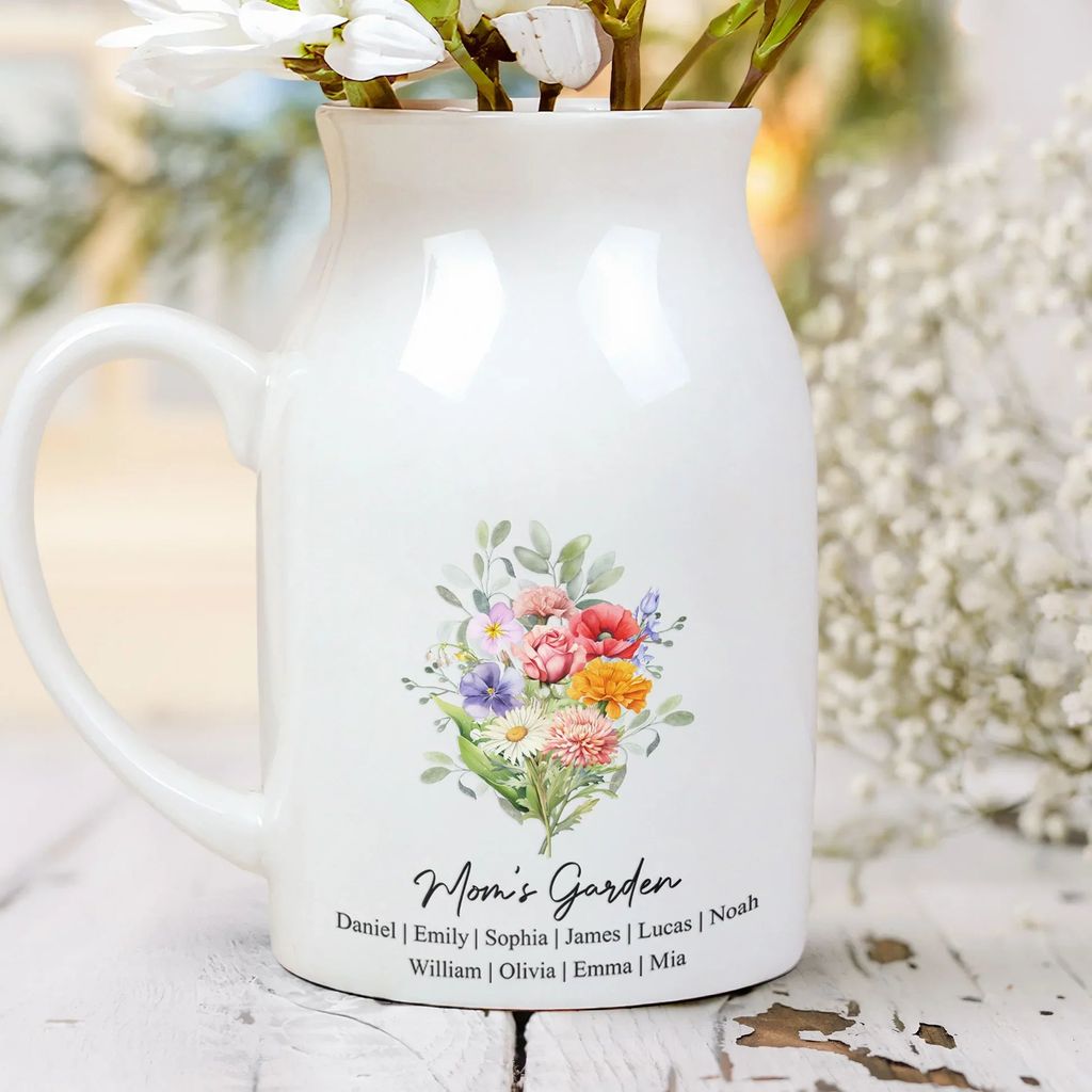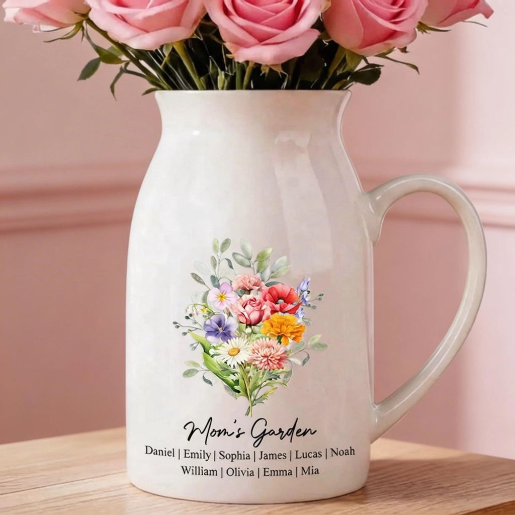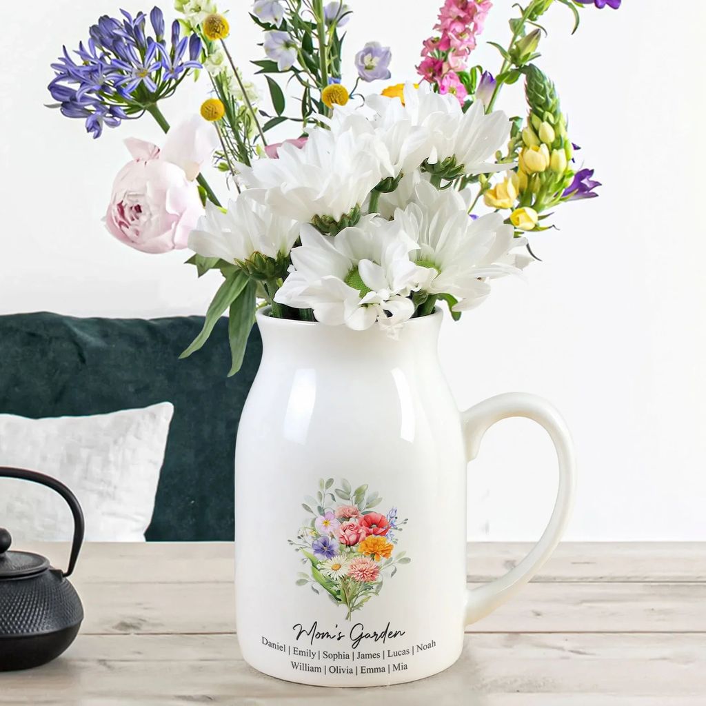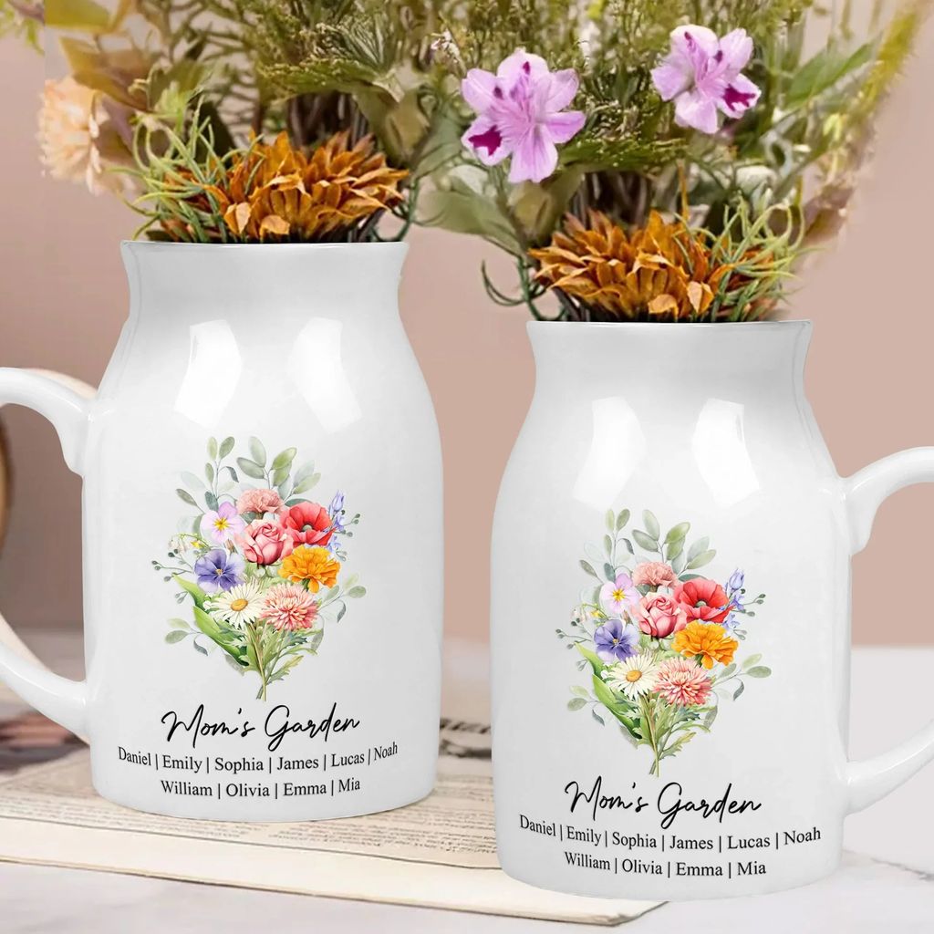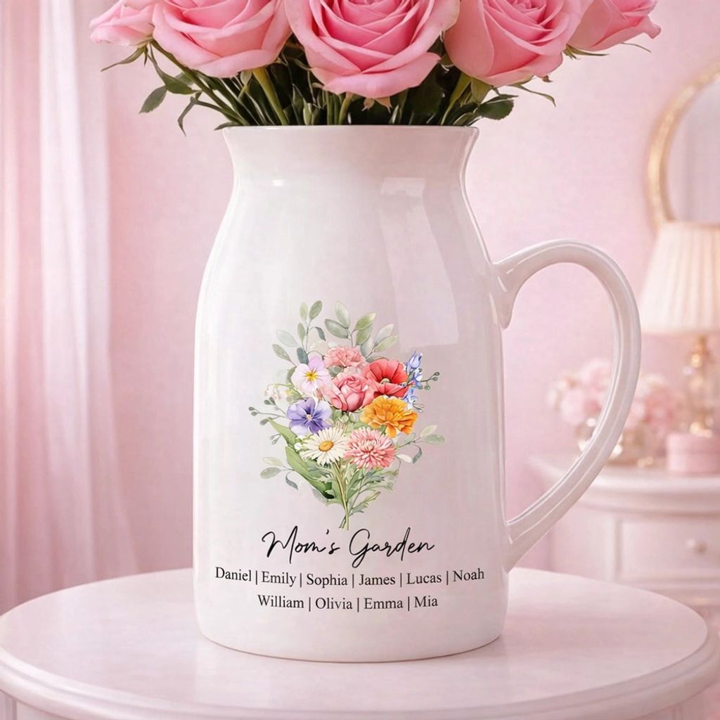 Personalized Handled Vase with Floral Bouquet Design for Dining Table or Entryway, Unique Gift for Mom