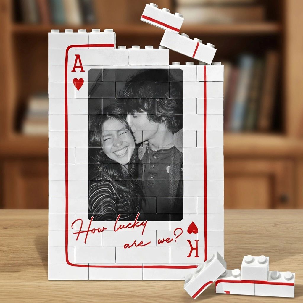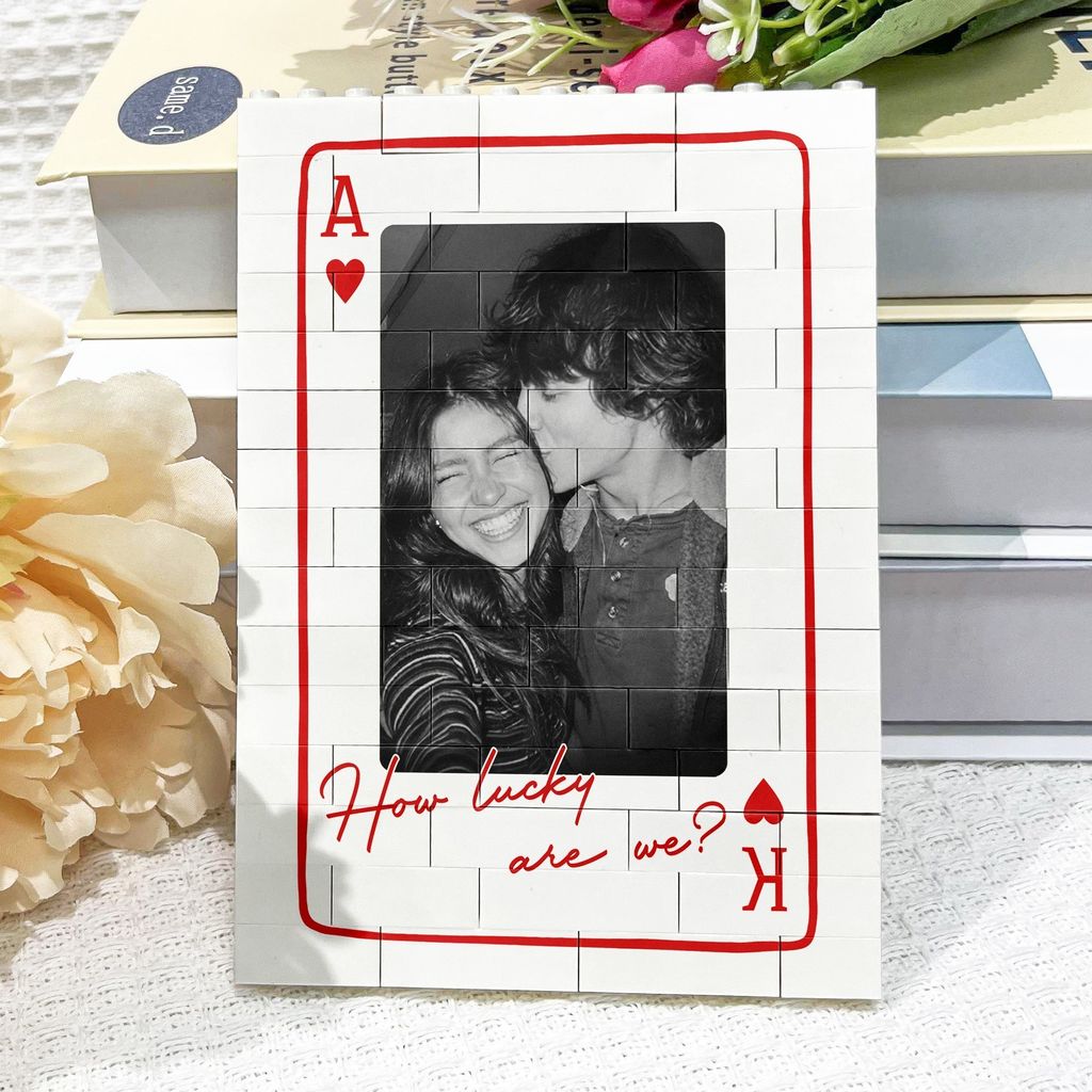 Couple Photo PVC Building Brick Puzzle in Playing Card Design, Personalized Keepsake for Boyfriend or Girlfriend, Sweet Gift