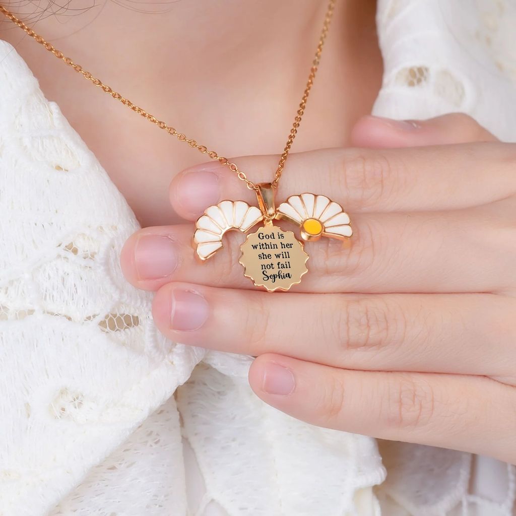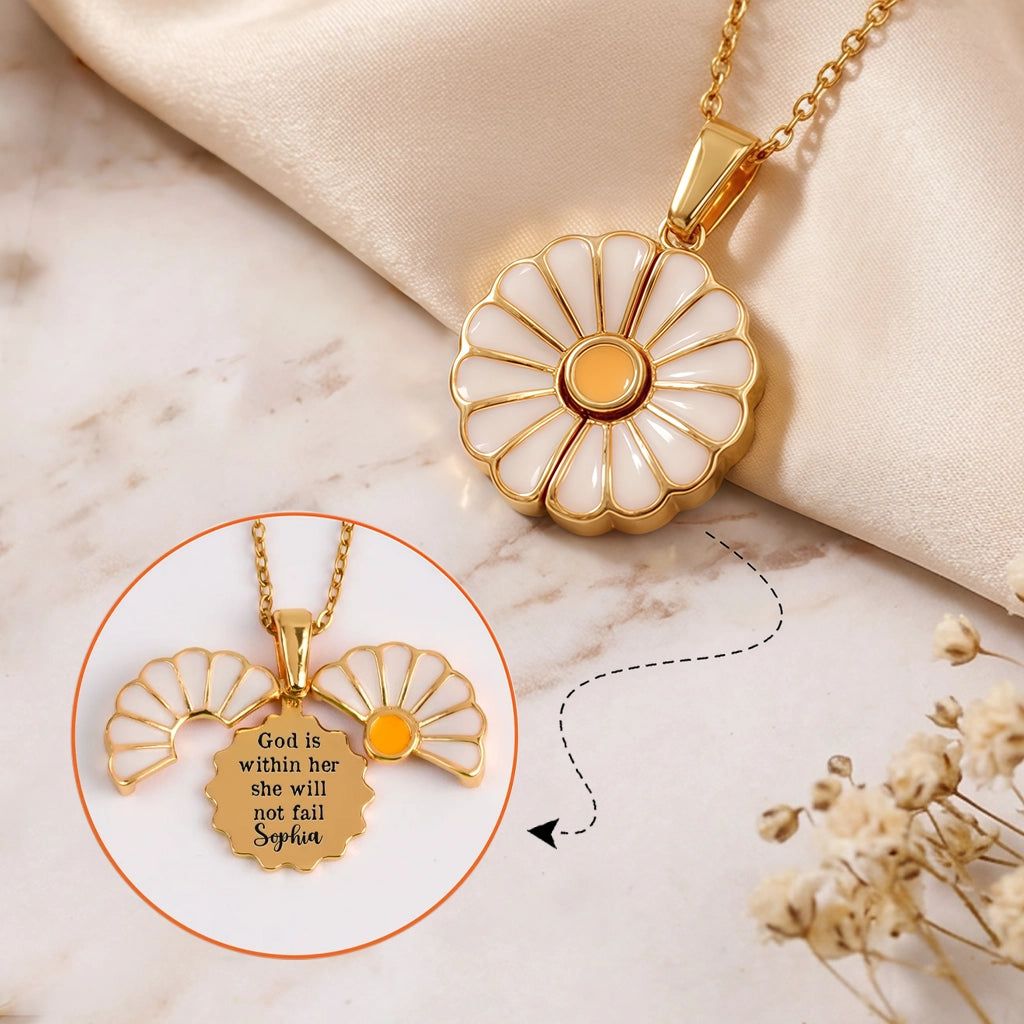 Personalized Stainless Steel Daisy Necklace With Hidden Message, Sweet Everyday Faith Gift For Her