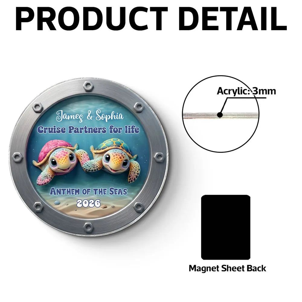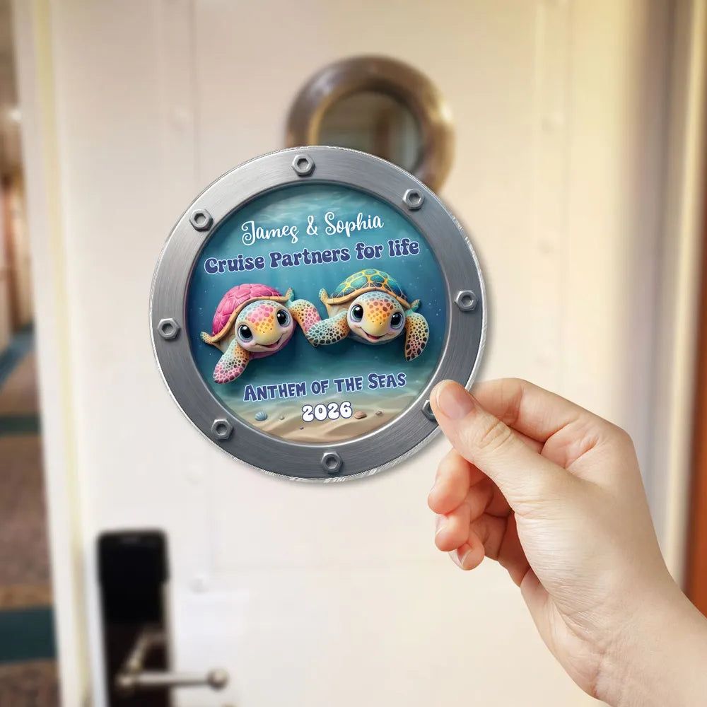 Acrylic Magnet Personalized for Cruise Partners, Colorful Turtle Porthole Design, Sweet Gift Idea for Wife or Husband