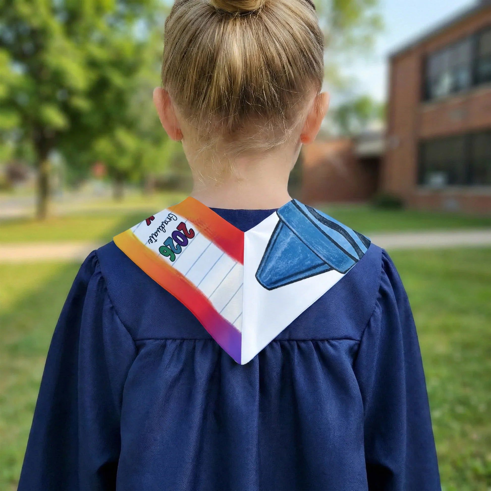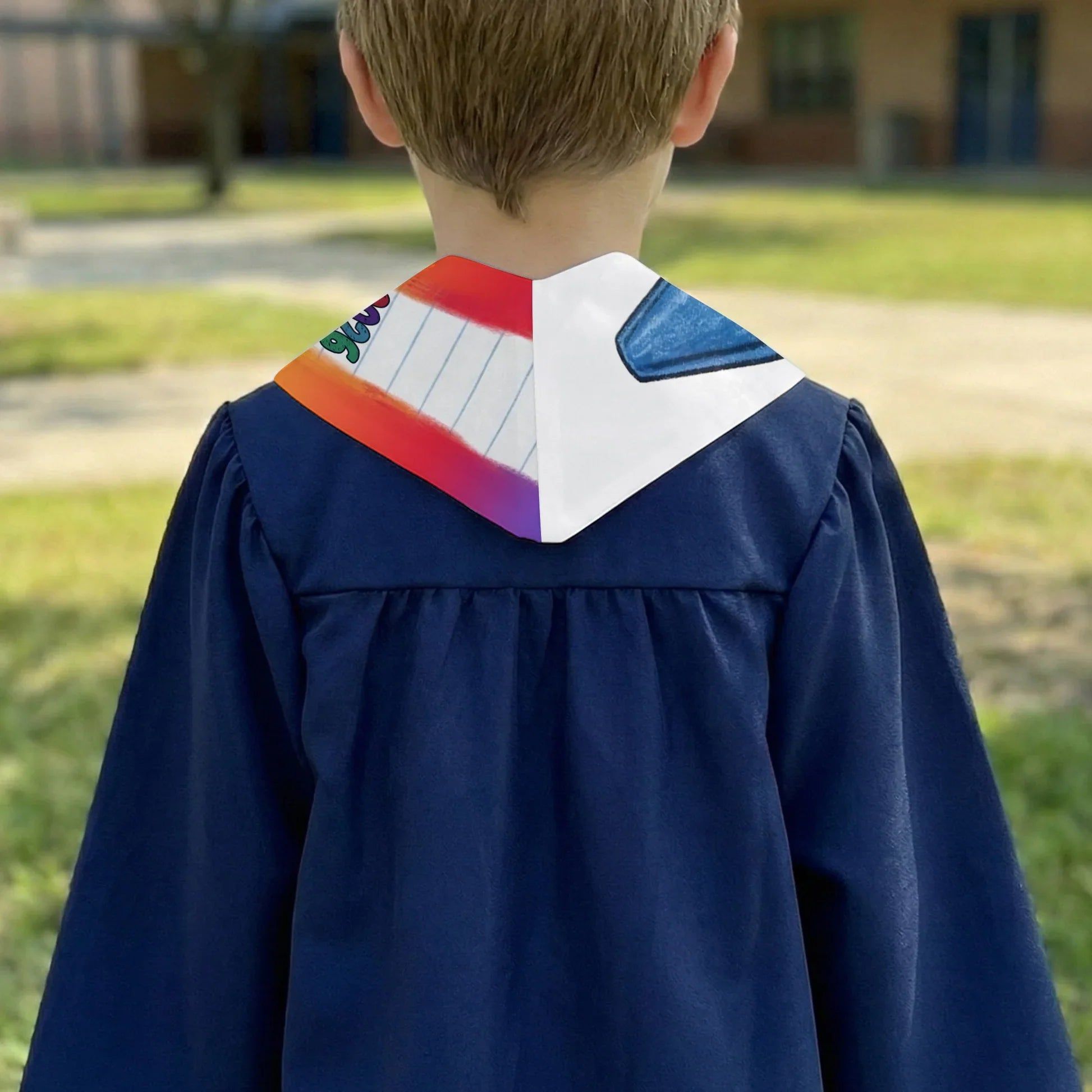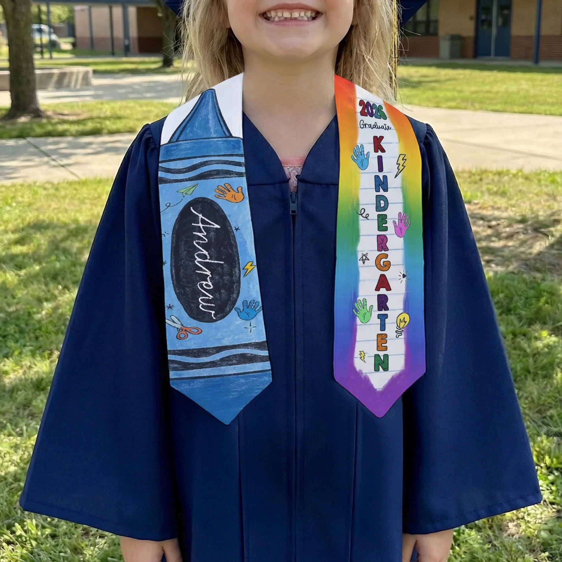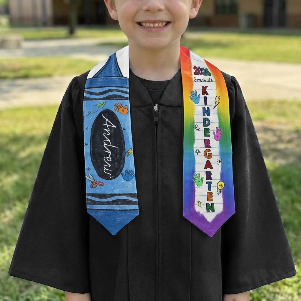 Personalized Graduation Stole with Crayon-Style Rainbow Design, Bright Keepsake Photo Moment, Unique Creative Gift for Kids