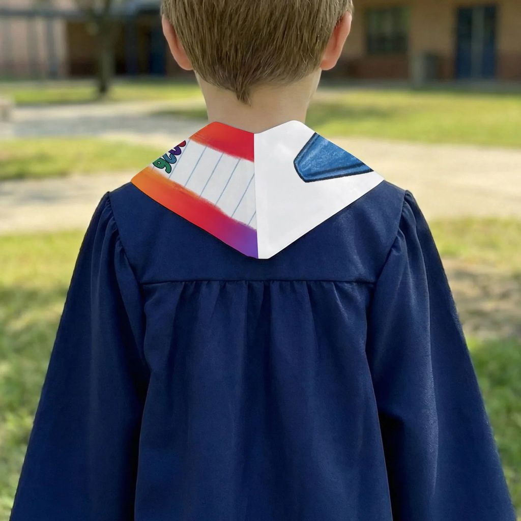 🌈 Bright, kid-style details that pop in photosWith a bold rainbow look, playful doodles, and a fun classroom vibe, this stole instantly stands out against a cap and gown. It makes those milestone pictures feel extra joyful and memorable.