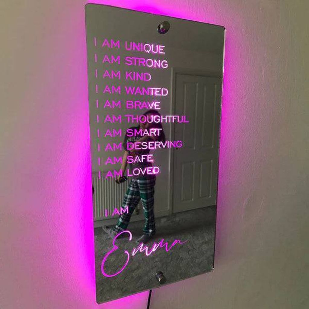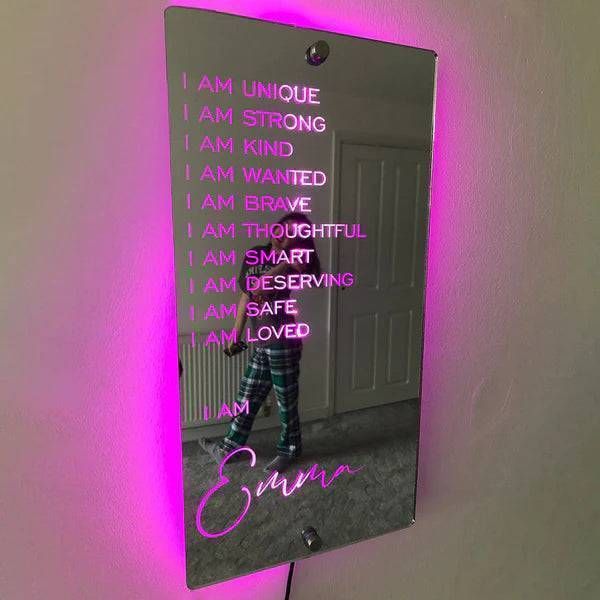 Personalized Affirmations Mirror - Light Colorful - Bedroom Lamp - Custom Text And Name
