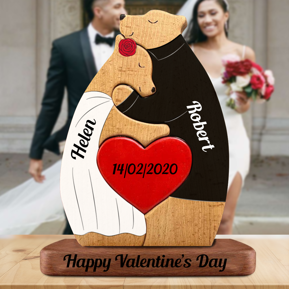 Love Bears Together - Customized Wooden Bear Couple Puzzle - Perfect for Anniversaries & Valentine's Day - Including Pet Carvings