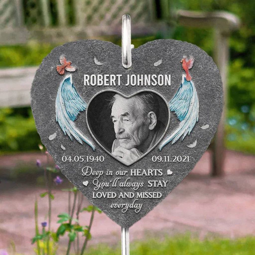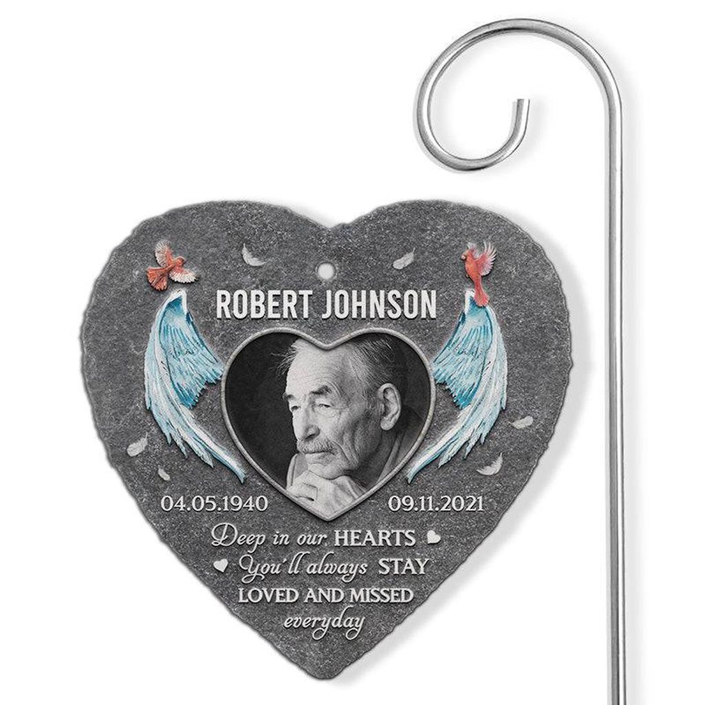 Forever In Our Hearts - Personalized Memorial Photo Garden Slate with Hook - A Touching Tribute & Sympathy Gift for Loved Ones