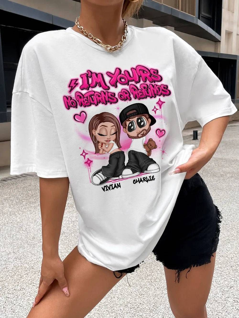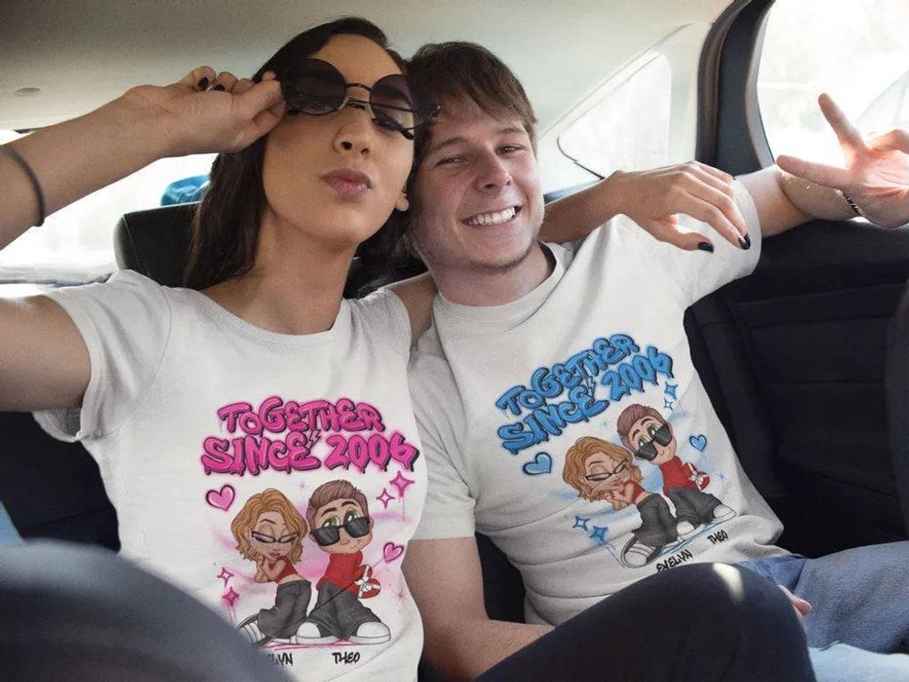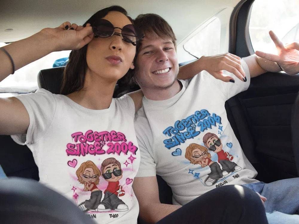 Y2K Couple Airbrushed Personalized Shirt, Gift For Him Gift For Her