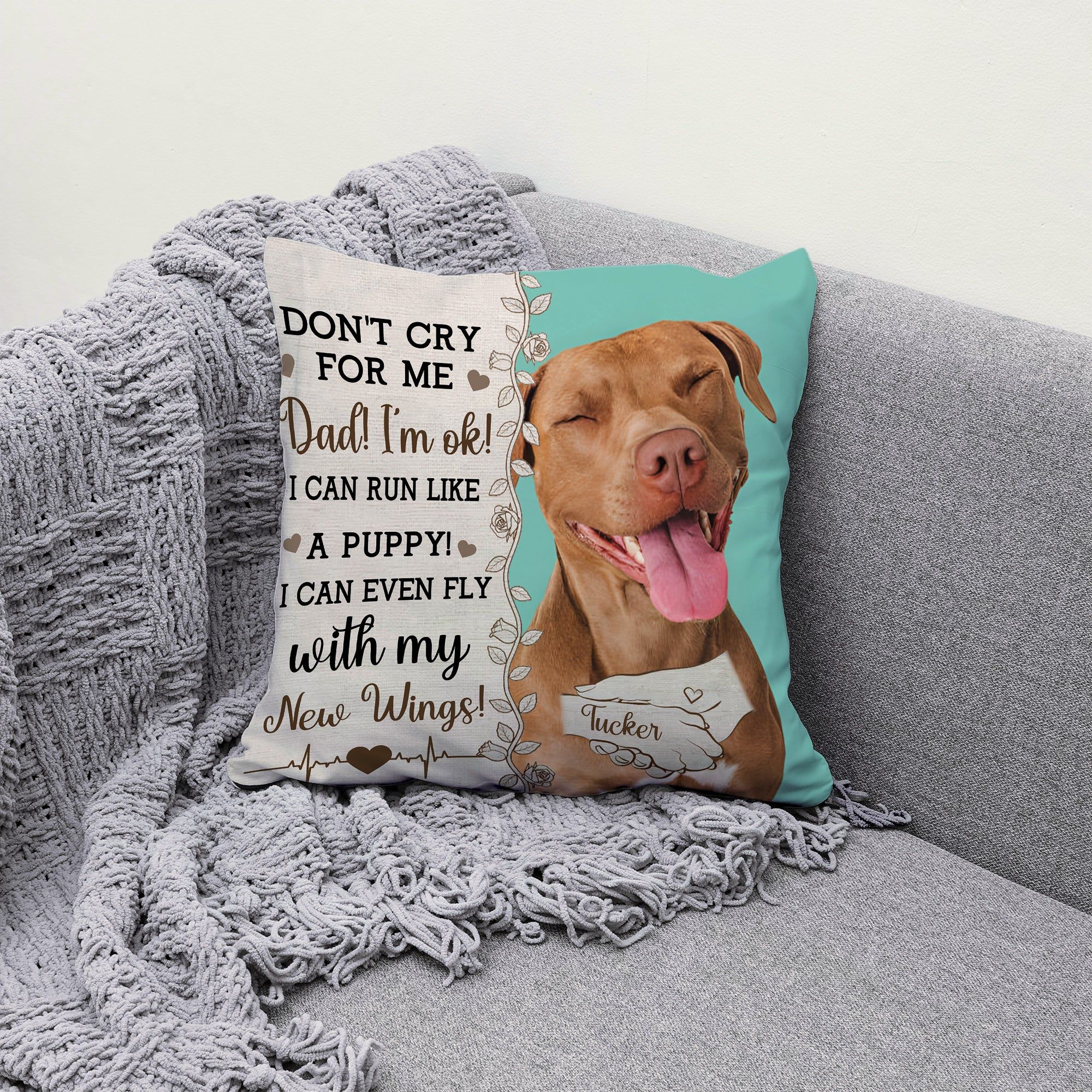Perfect for cuddling up with on a chilly winter night or for adding a unique, personal touch to any room, this pillow serves as a beautiful reminder of the bond shared with a beloved pet. Whether it’s a cute image of their dog or a personalized message, this pillow will evoke sweet memories every time it's seen.