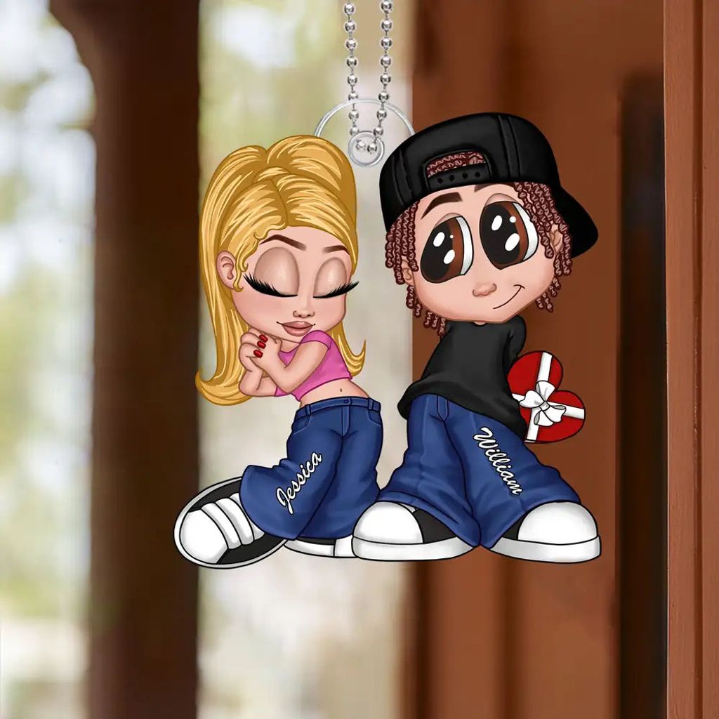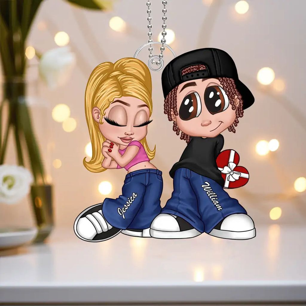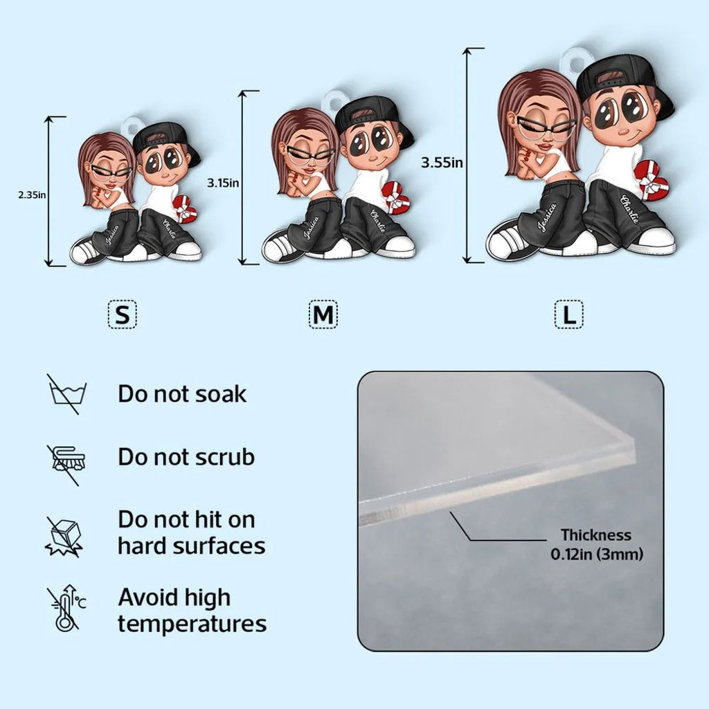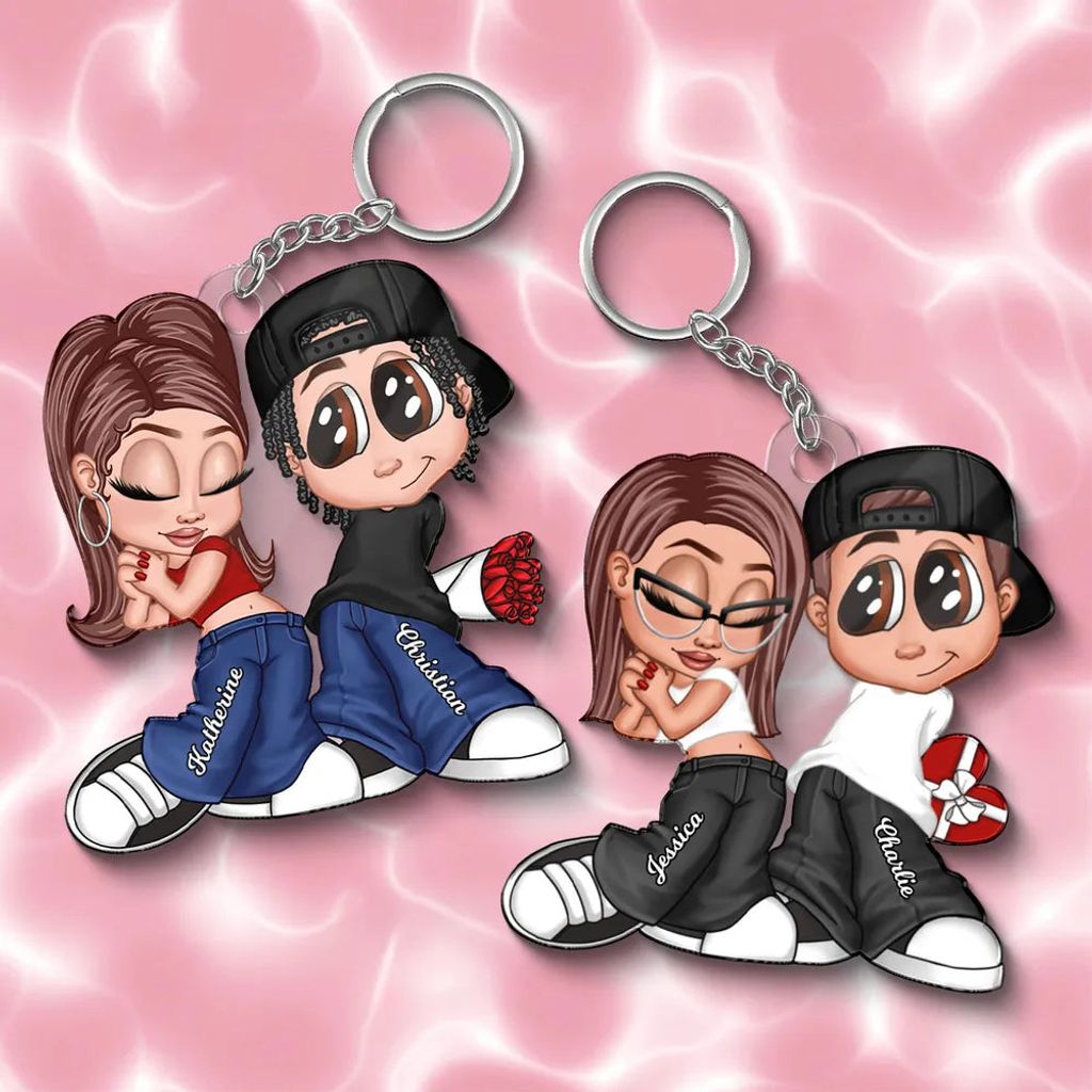This adorable Y2K-style acrylic keychain captures a moment of sweet, playful love between a couple. From baggy jeans to oversized eyes, every detail exudes retro charm and modern affection. It's a mini piece of your story—stylish, sentimental, and always close at hand.