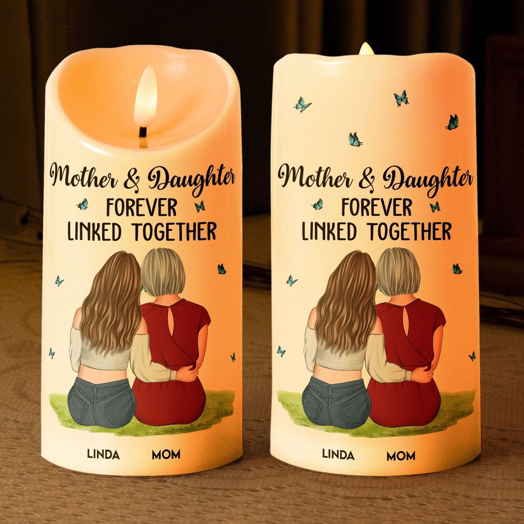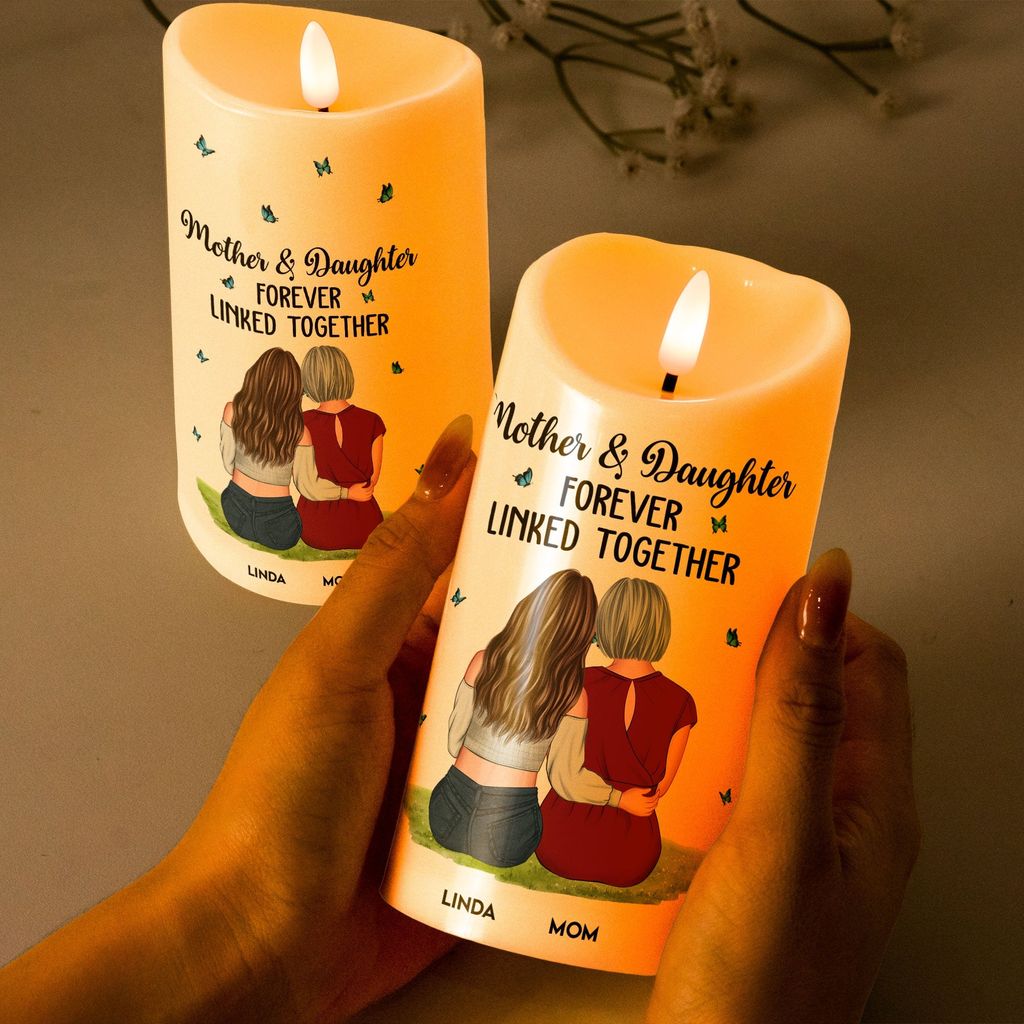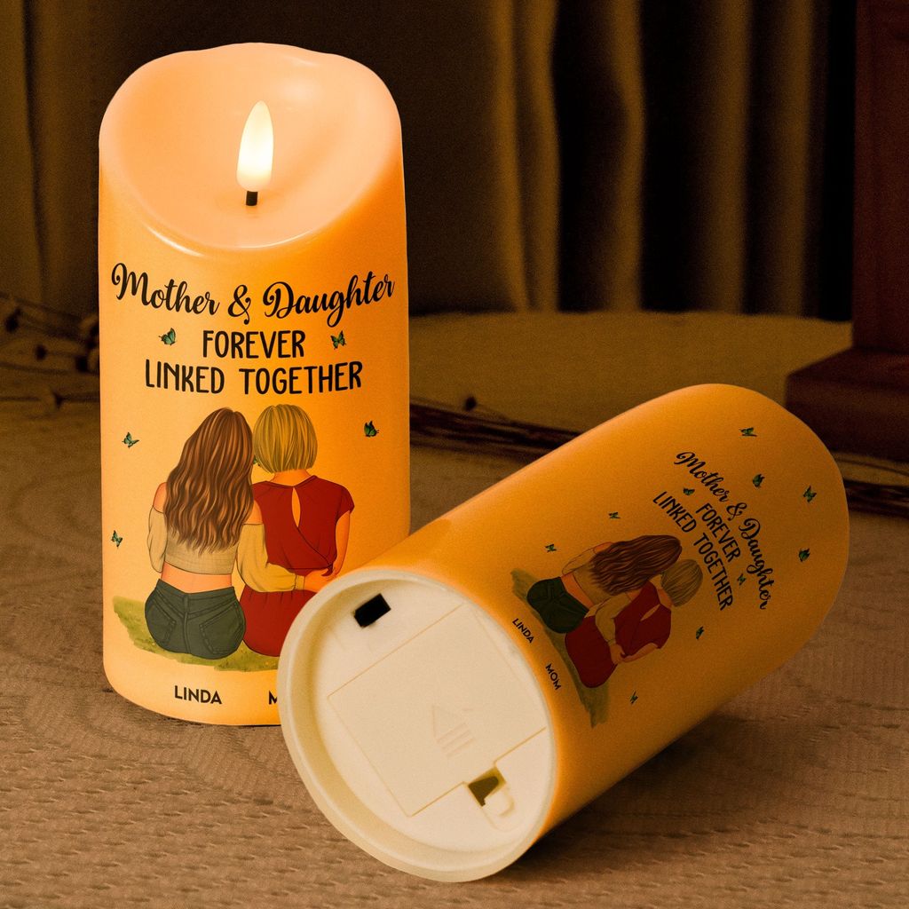 Flameless LED Candle – Mother & Daughter Back‑Hug Art, “Forever Linked Together” Personalized Light