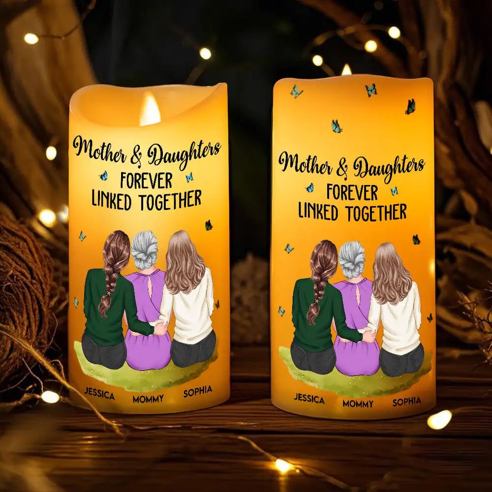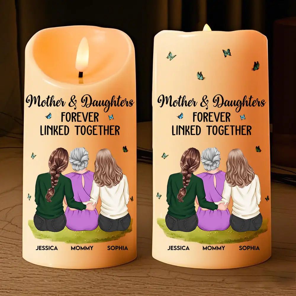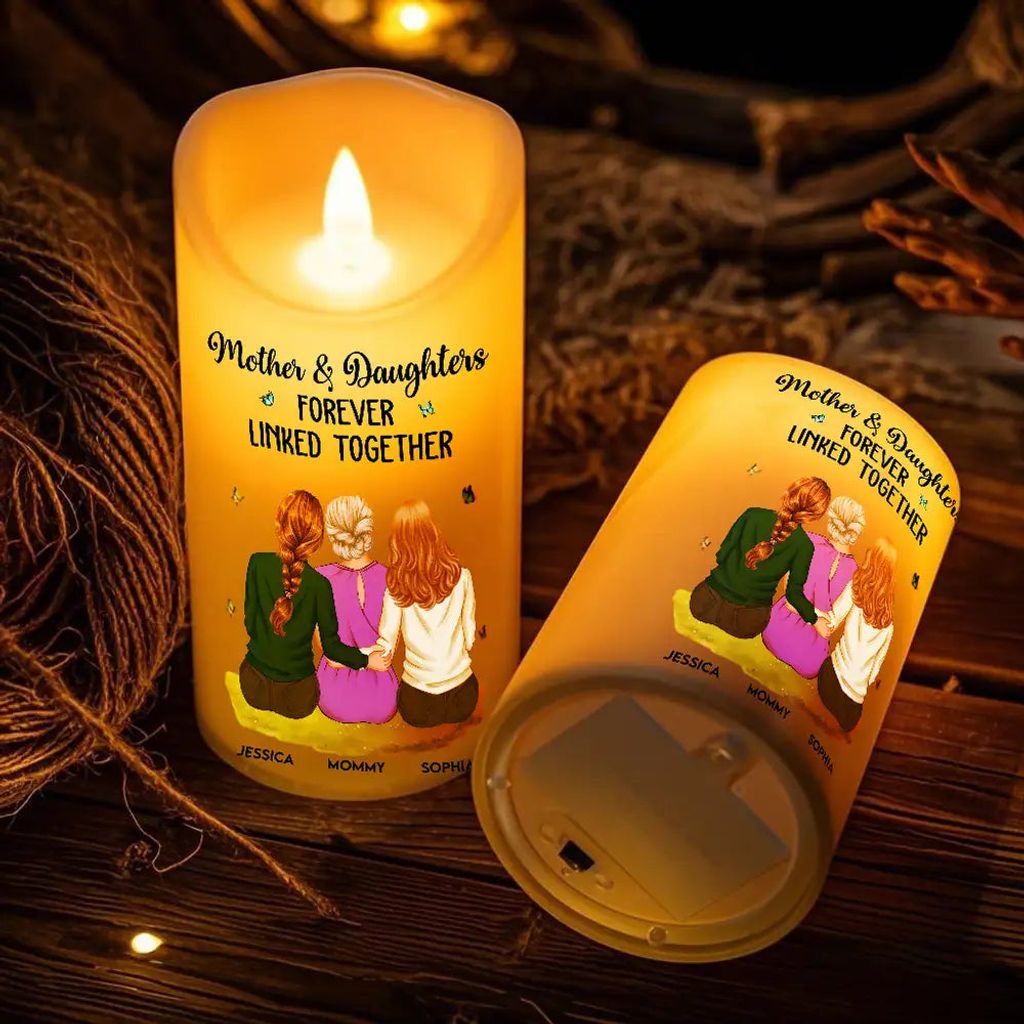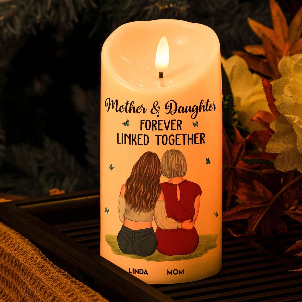 Flameless LED Candle – Mother & Daughter Back‑Hug Art, “Forever Linked Together” Personalized Light