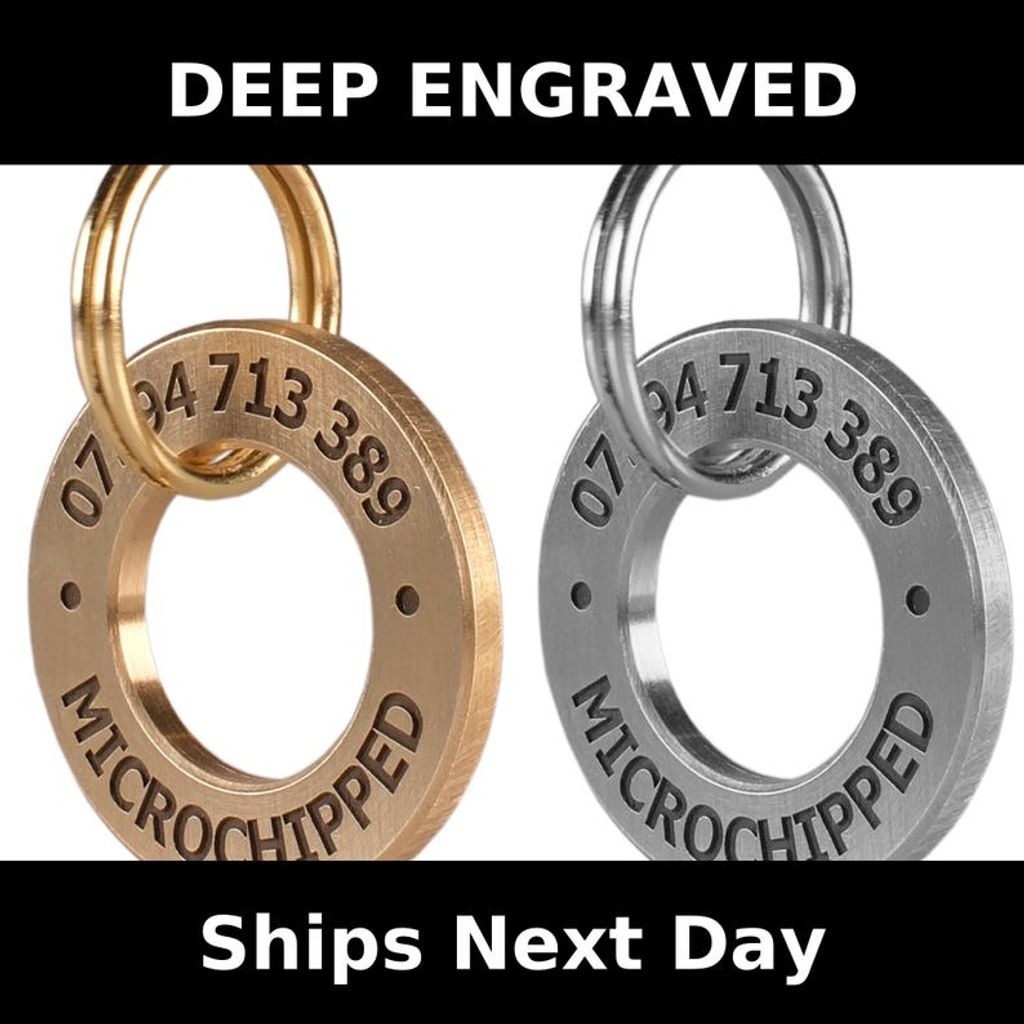 Custom Pet ID Tag – Deep Engraved Round Brass & Stainless Steel ID for Dogs and Cats