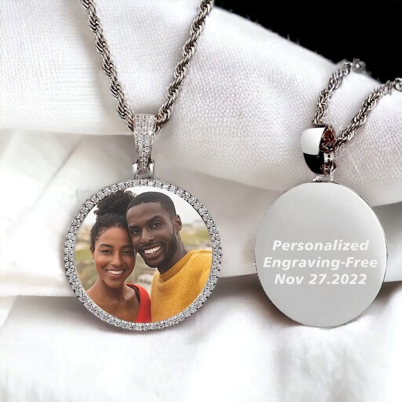 Custom Picture Necklace, Personalized Necklace With Photo, Engraving Necklace, Hip Hop Round Pendant Iced Out Cubic Zircon, Gift for him/her