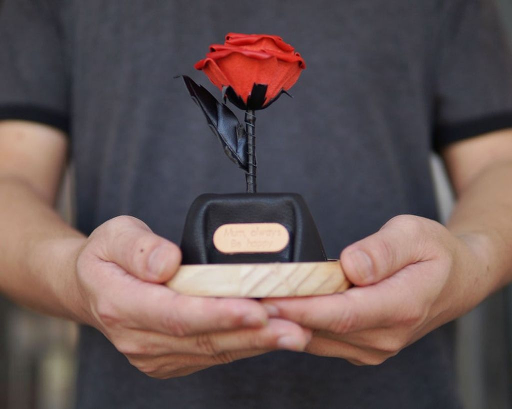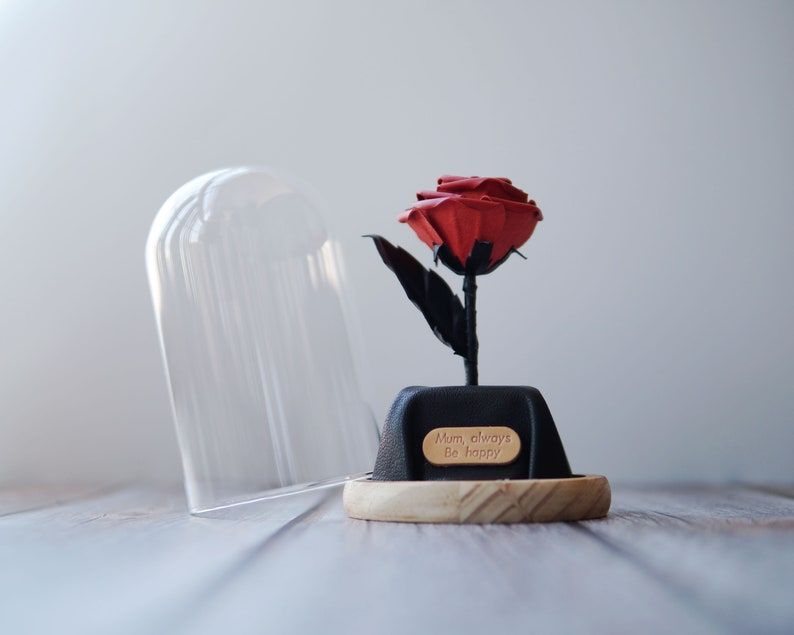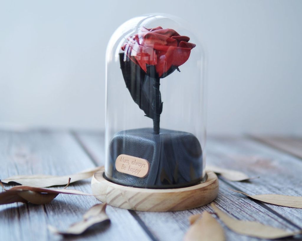 This Leather Rose Preserved Flower Gift Box is a perfect as a girlfriend gift, women's gifts, mother's day gift, Valentine's gifts, anniversary gift, personalized gift, etc. It is made from Italian Buttero leather with a special packing box to protect the glass cover and the flower.