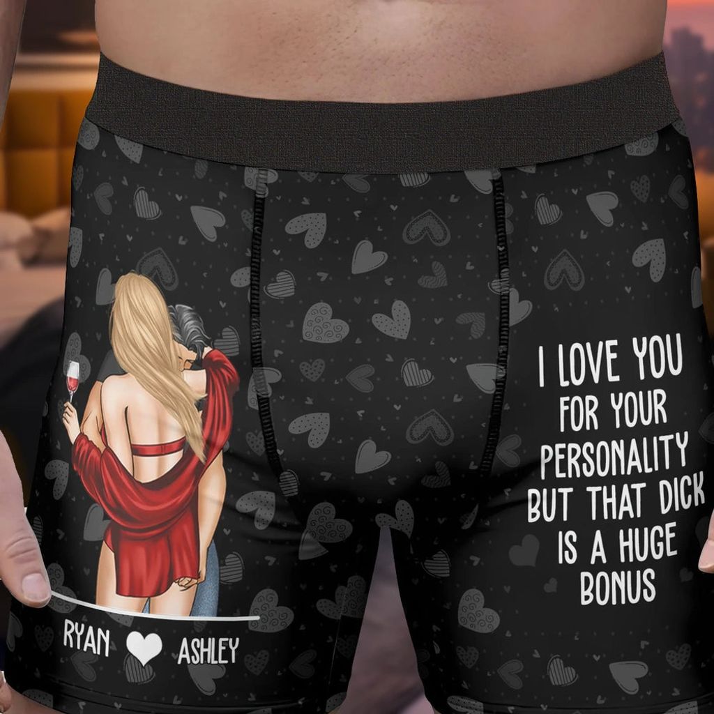 Personalized Men's Boxer Briefs with Funny Romantic Quote, Couple Hug Illustration, Unique Anniversary Gift