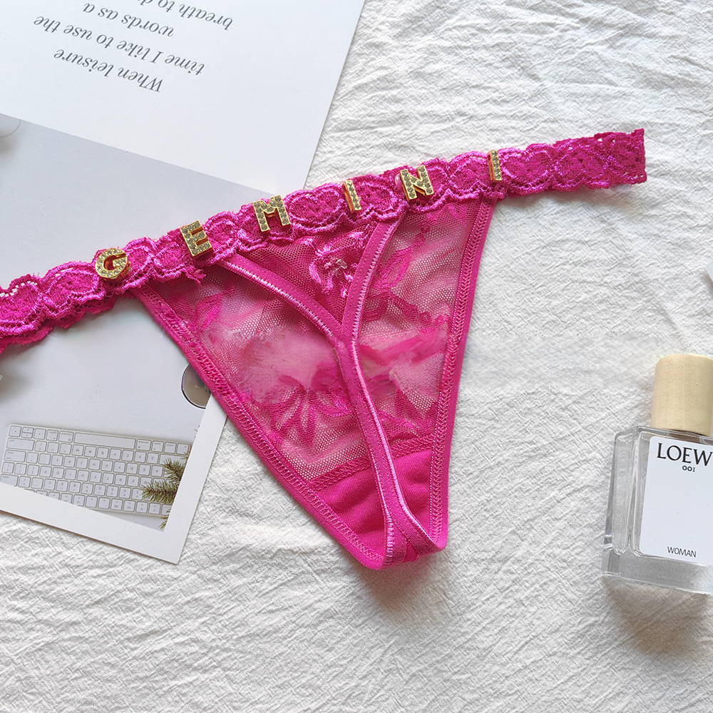Made of premium soft lace and mesh fabric, this thong ensures a comfortable and snug fit. The customizable lettering adds a personal touch, while the lace trim design exudes both elegance and sexiness. Carefully tailored for a close fit without feeling restrictive.