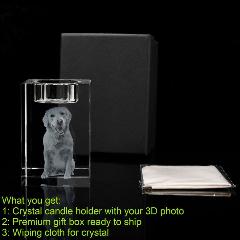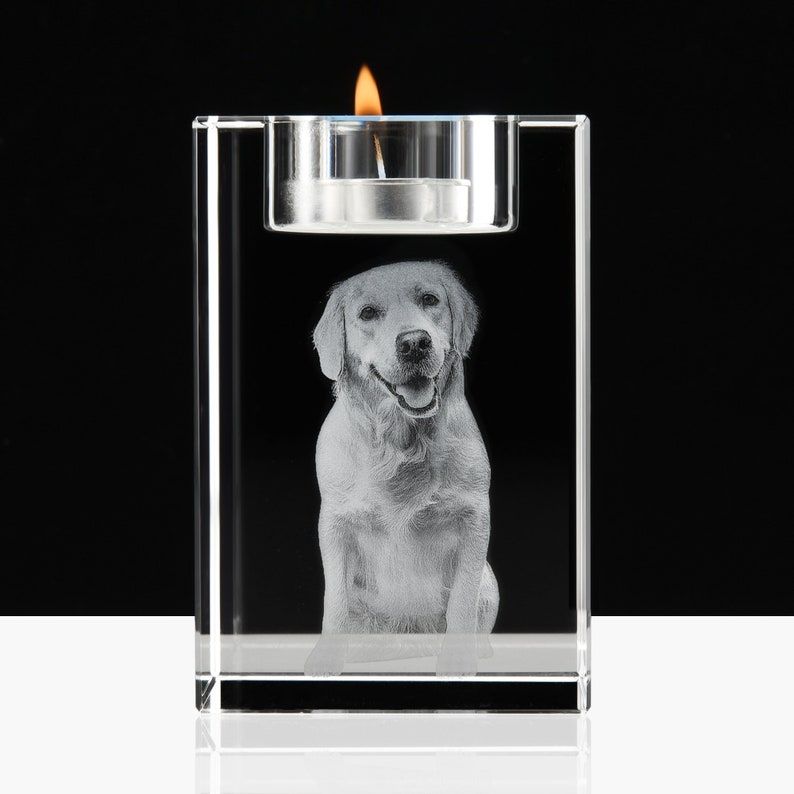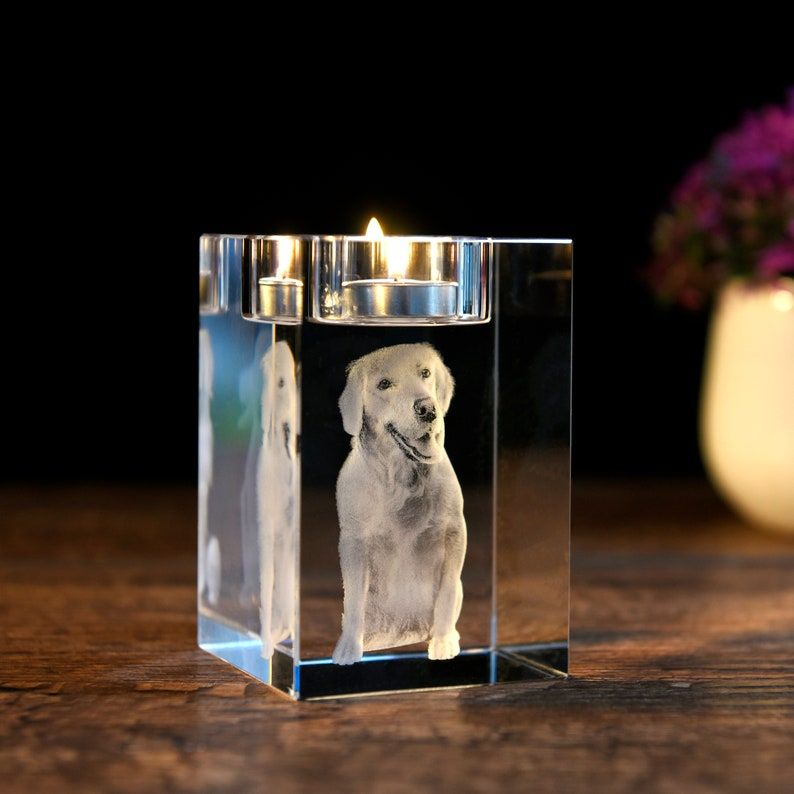Custom 3D Pet Portrait,3D Engraved Crystal Photo,Custom Candle Holder,Memorial Candle Votive,Dog Memorial GiftPet Loss GiftPet SympathyGift
