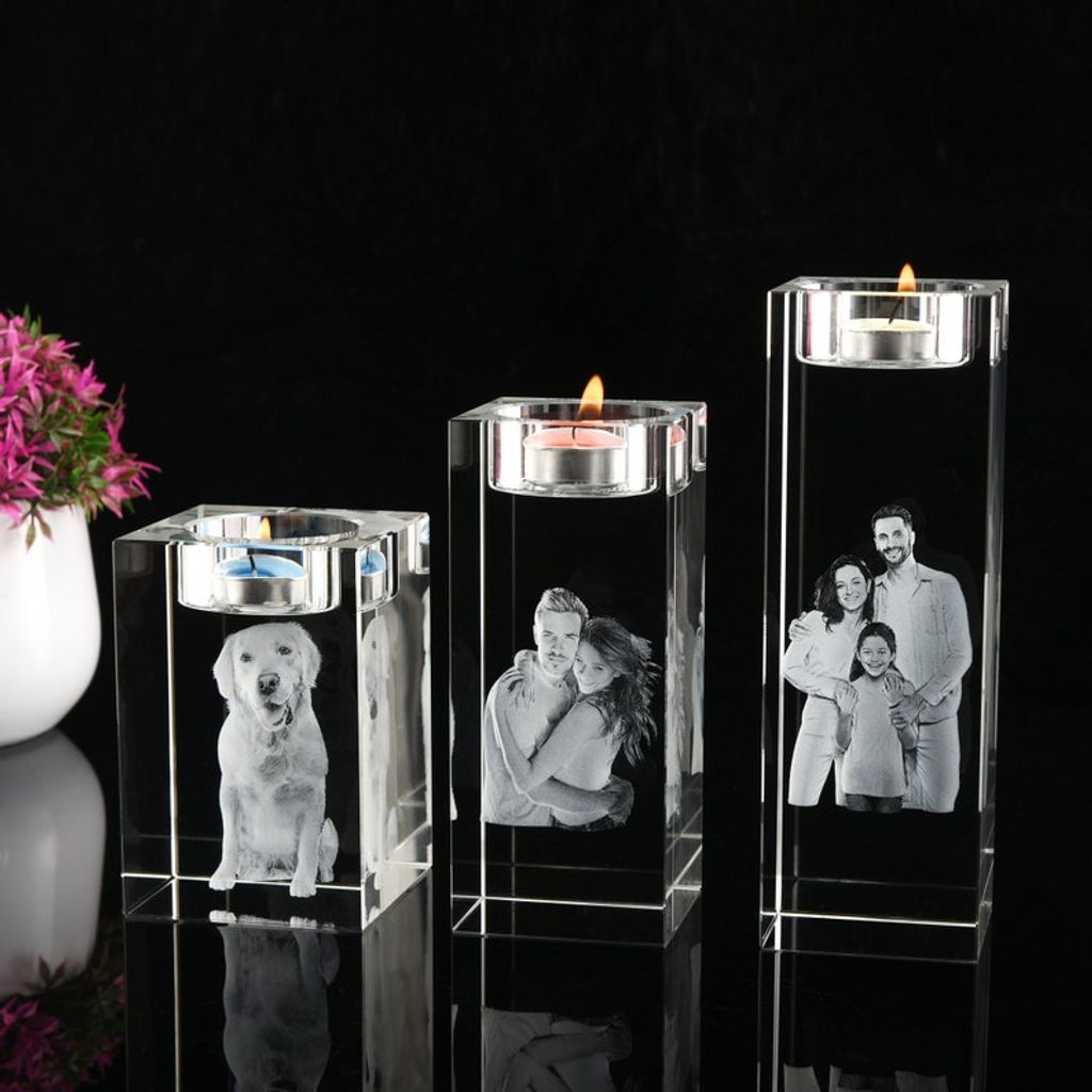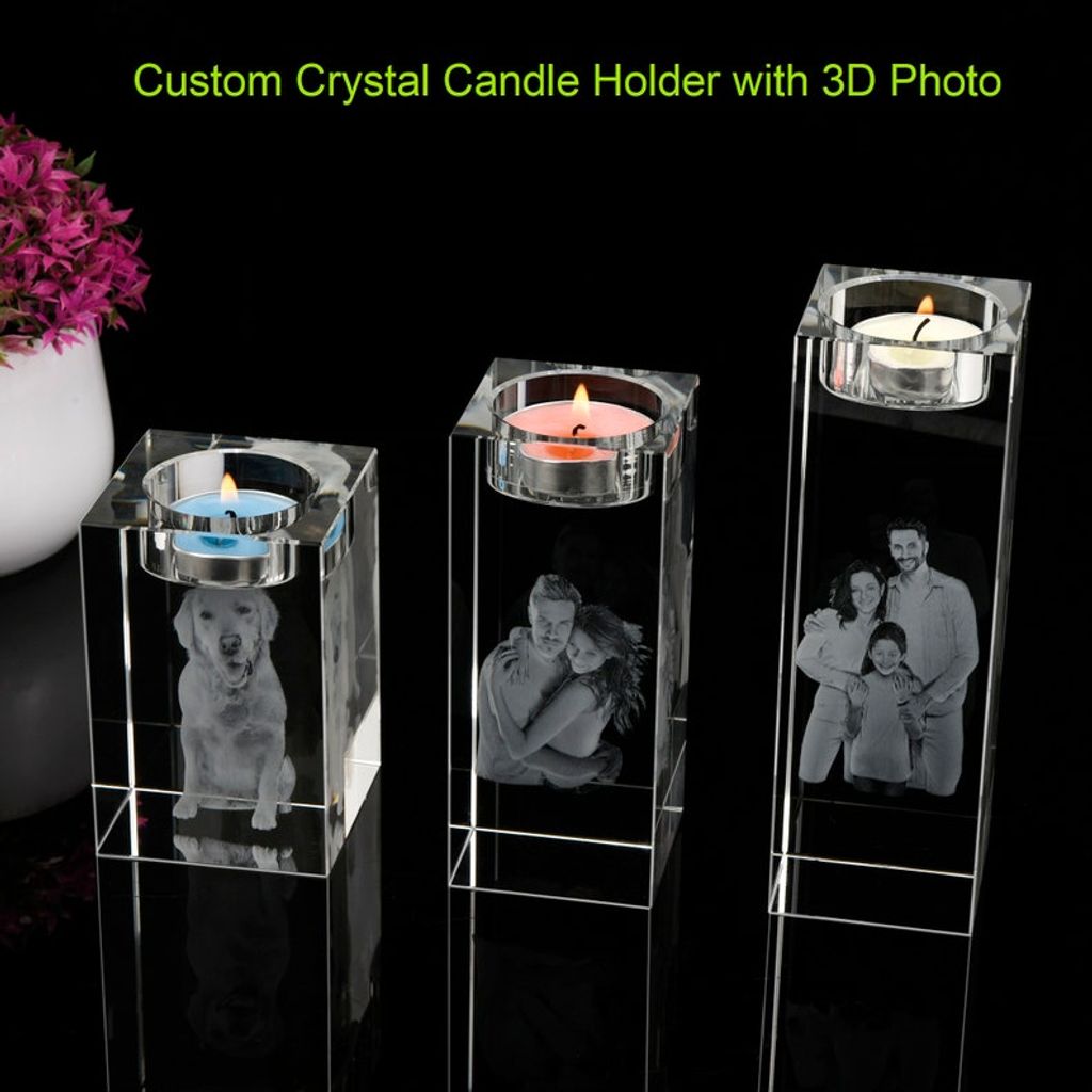 Introducing our Custom 3D Crystal Photo Candle Holder, an exquisite addition to any home or a heartfelt gift for loved ones. This unique piece is not just a candle holder; it's a personalized keepsake that captures your special moments in a stunning 3D engraving, lit beautifully by the soft flicker of a candle.