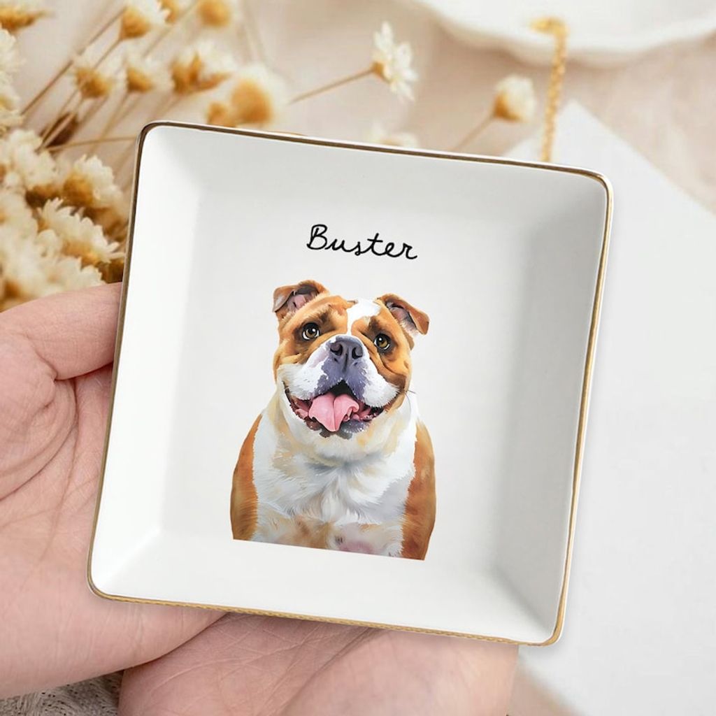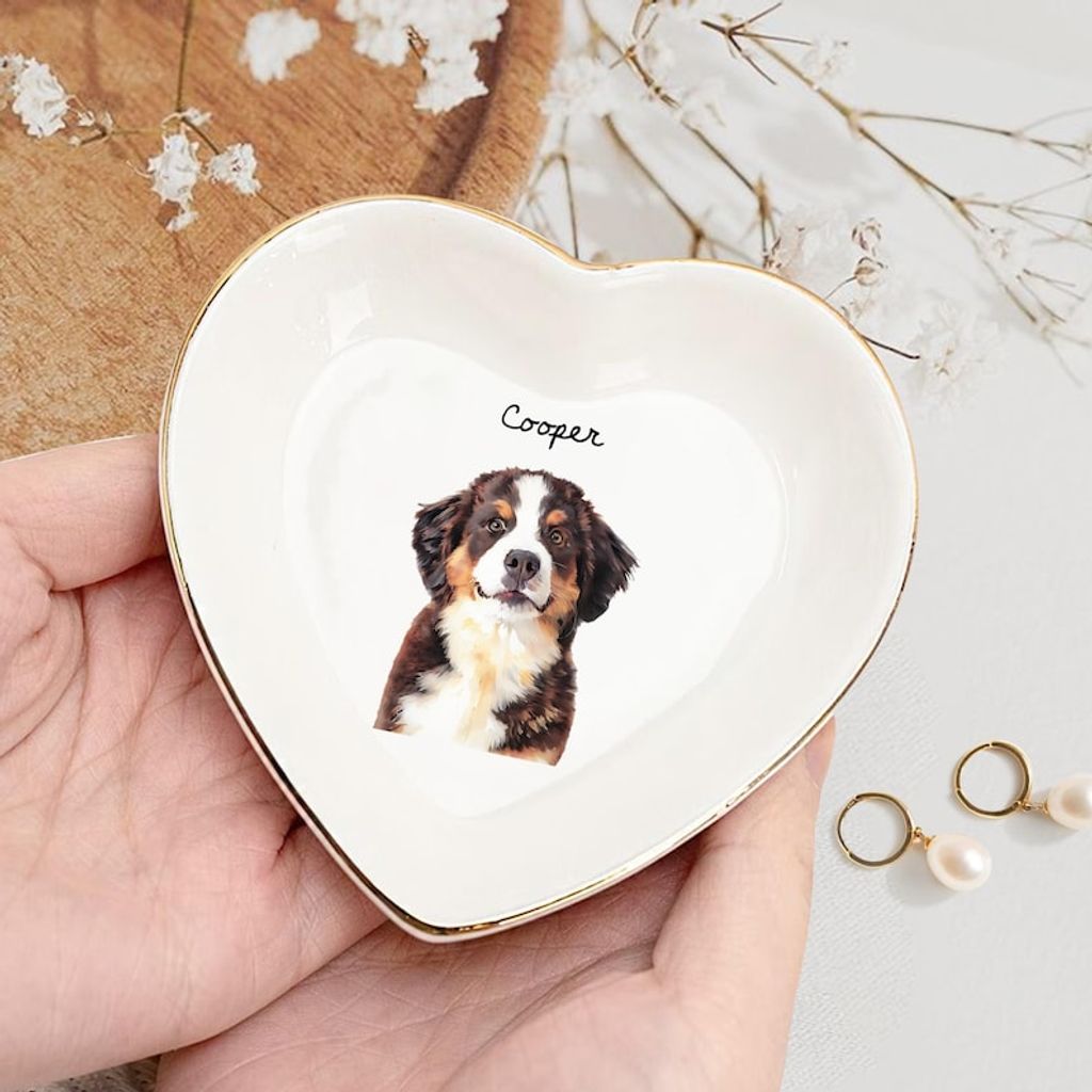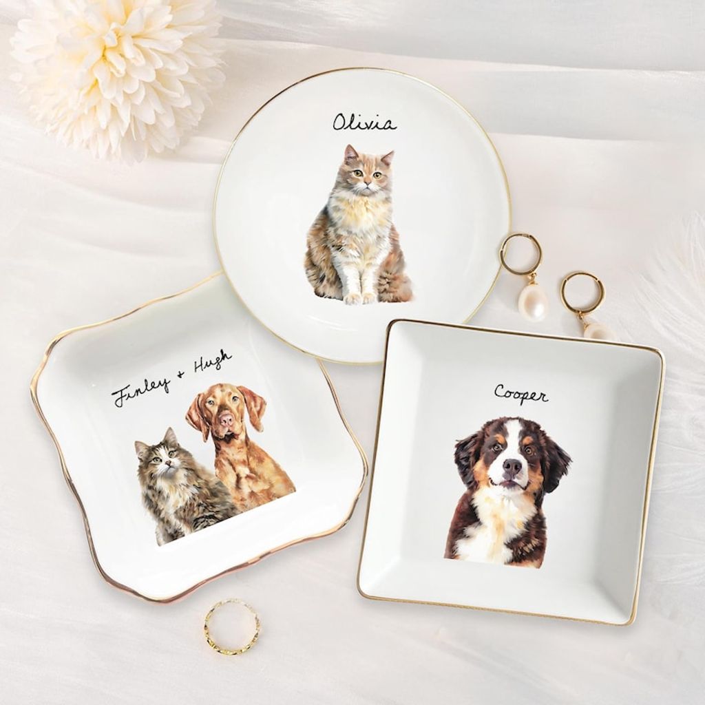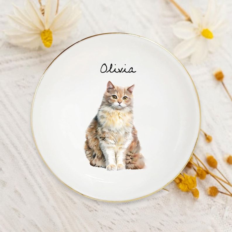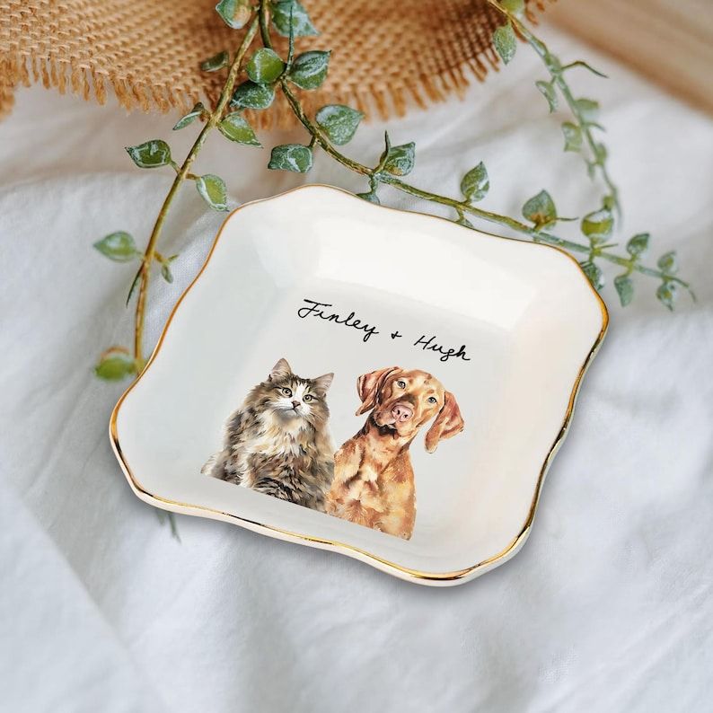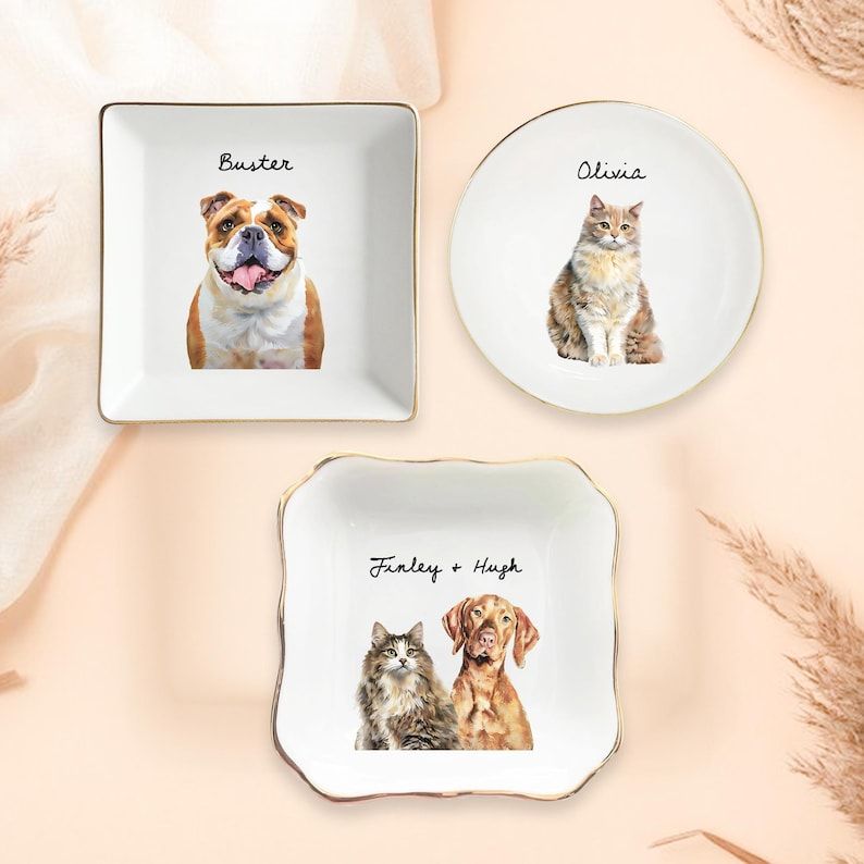 Custom Dog Cat Photo Ring Dish, Personalized Pet Portrait Jewelry Dish, Dog Mom Trinket Dish, Pet Lovers Gift, Mothers Day Gift for Cat Mom