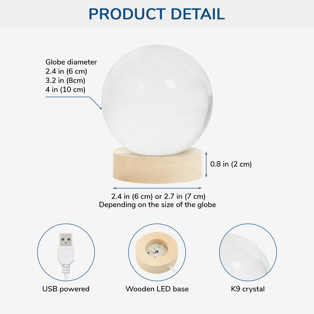 - Premium Crystal Craftsmanship: High-clarity crystal ball with beautifully illuminated engraving.