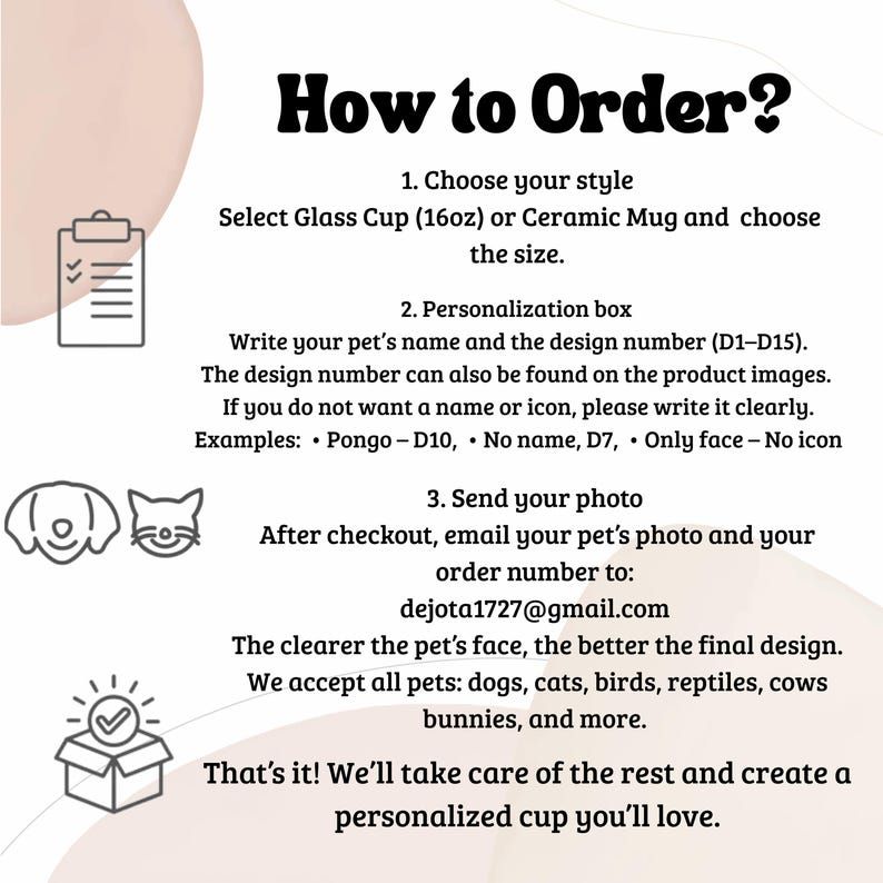 3. After checkout, send your pet’s photo + order number to our email 📧 dejota1727 [!at] gmail.com