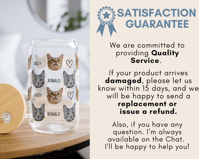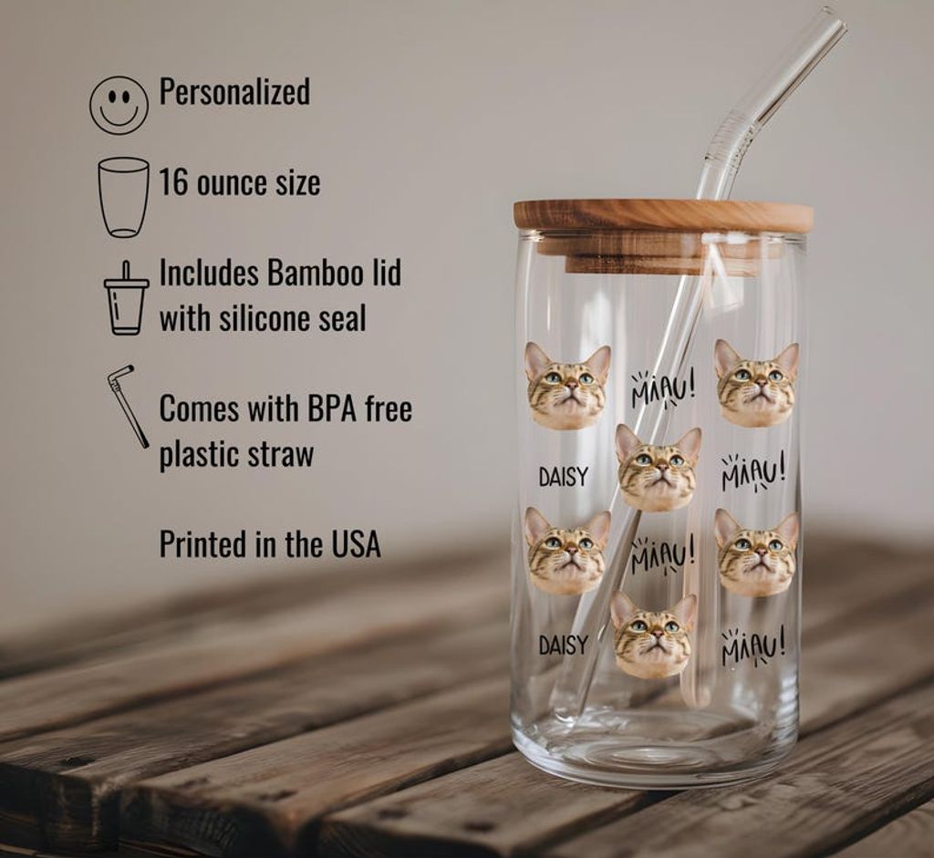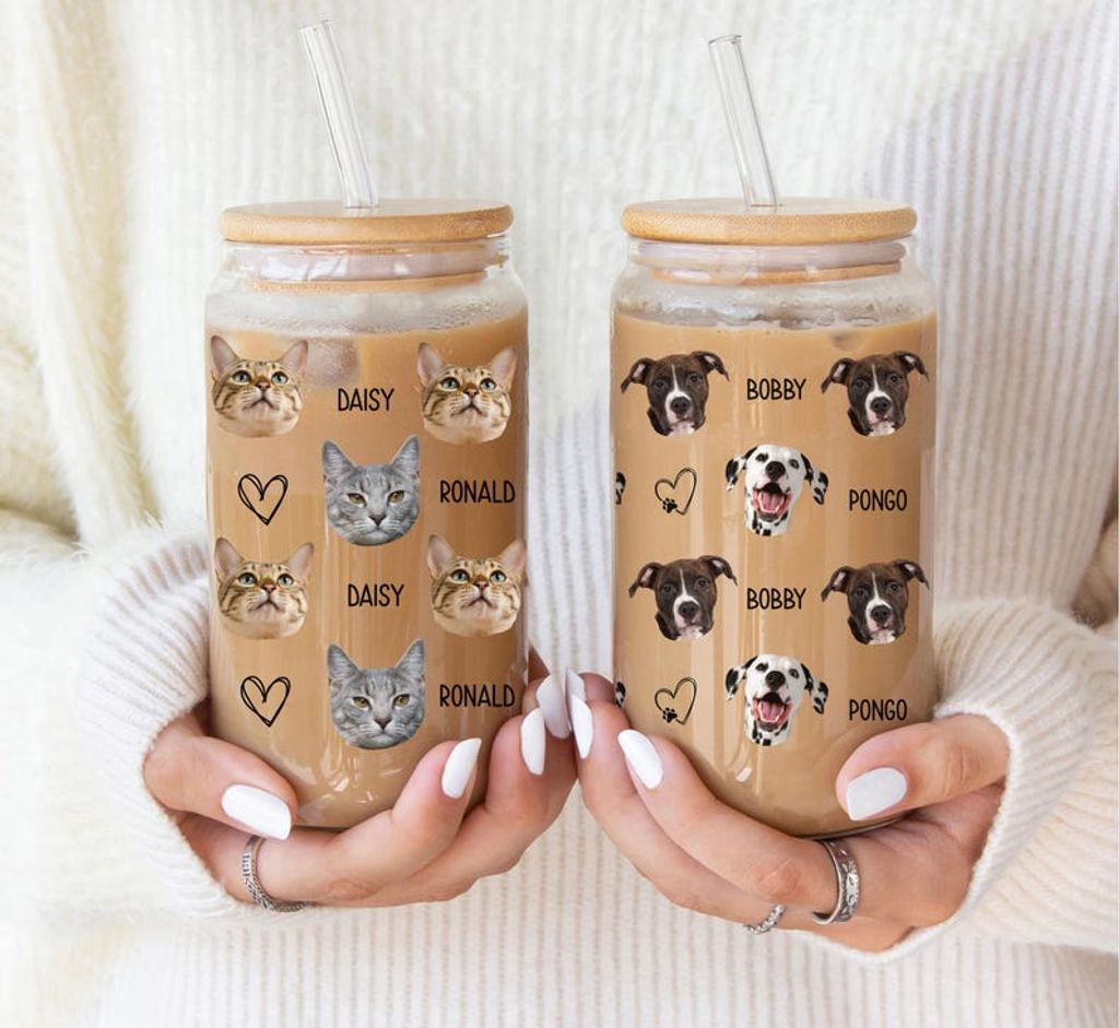 Personalized Pet Photo Glass Cup: Custom Dog or Cat Iced Coffee Cup