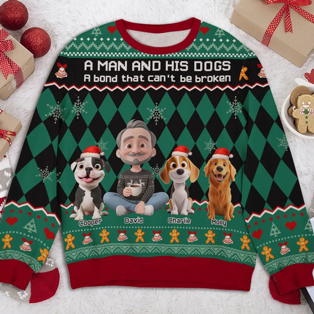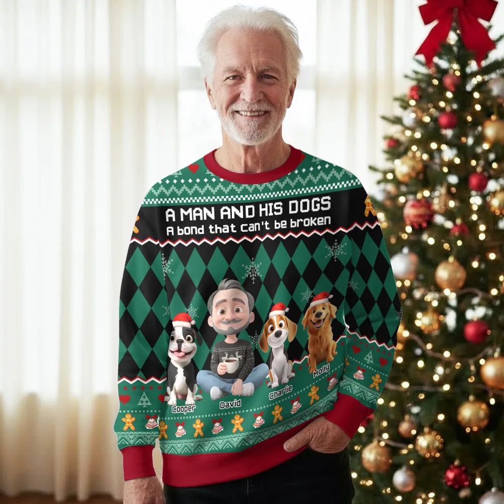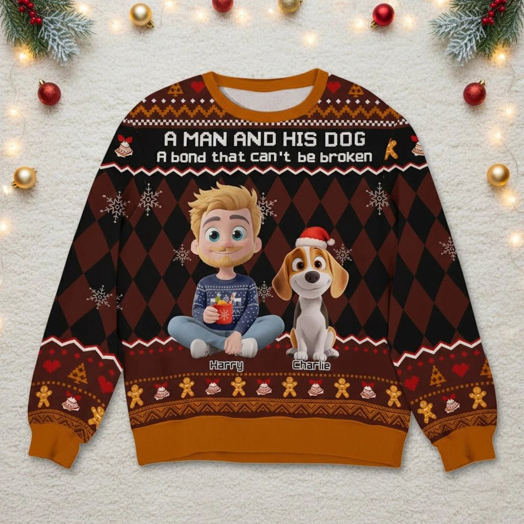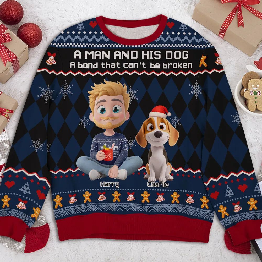 Personalized Printed Sweatshirt for Dog Dads – A Man and His Dog Christmas Gift, Unique Cozy Holiday Surprise