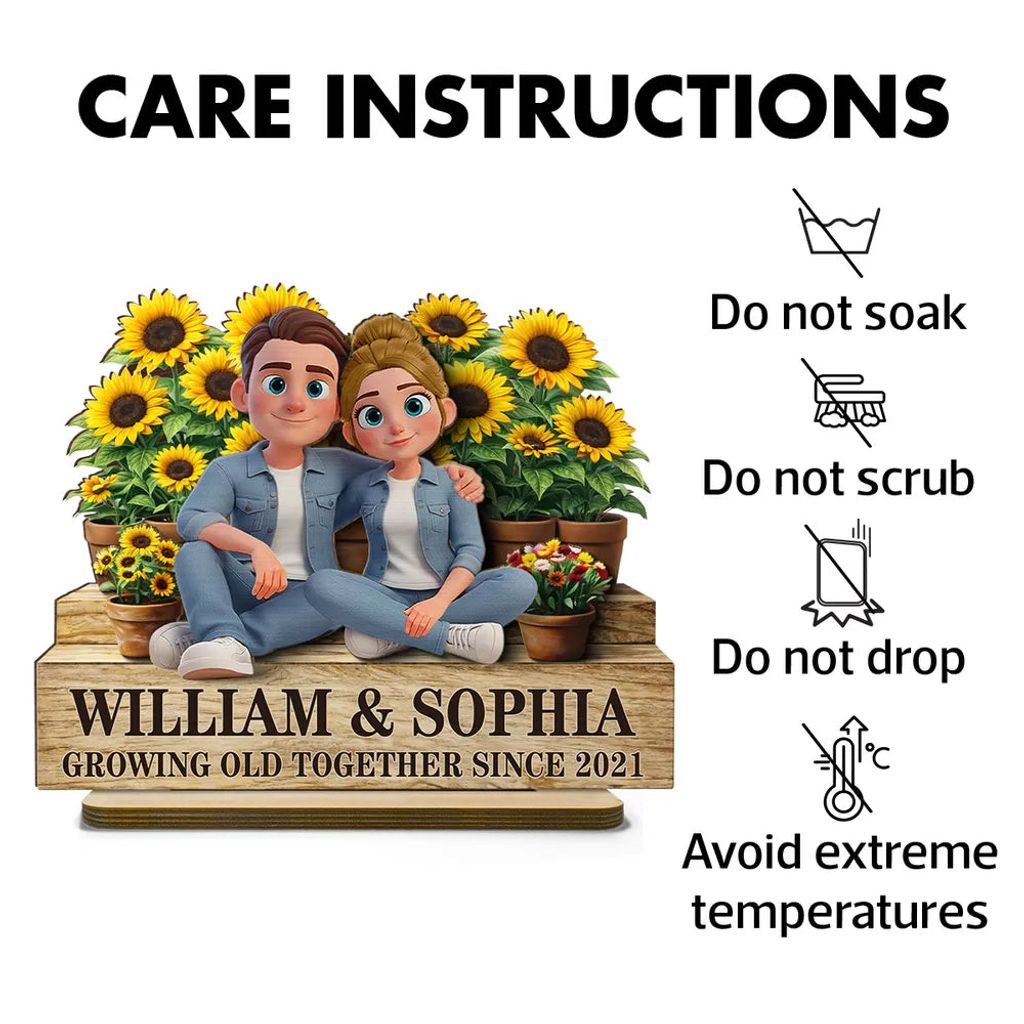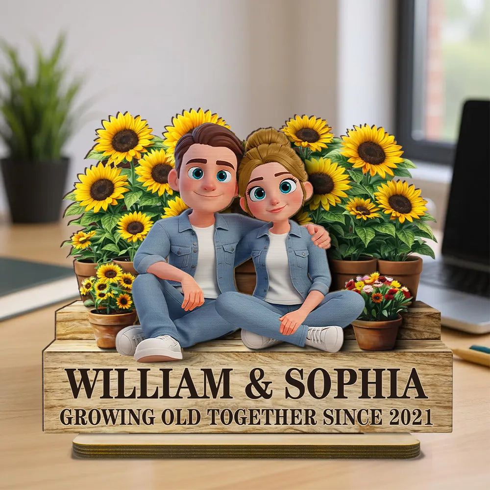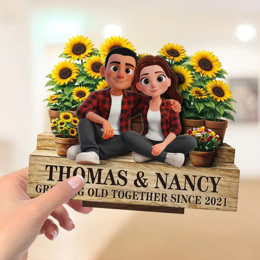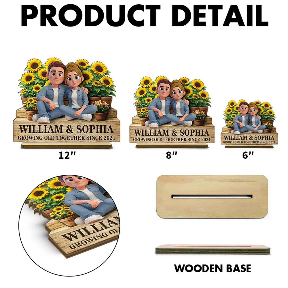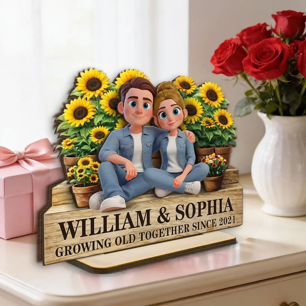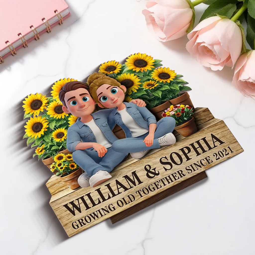 Growing Old Together Since 2-Layer Wooden Plaque with Cozy Couple and Sunflowers Unique Anniversary Gift for Him or Her