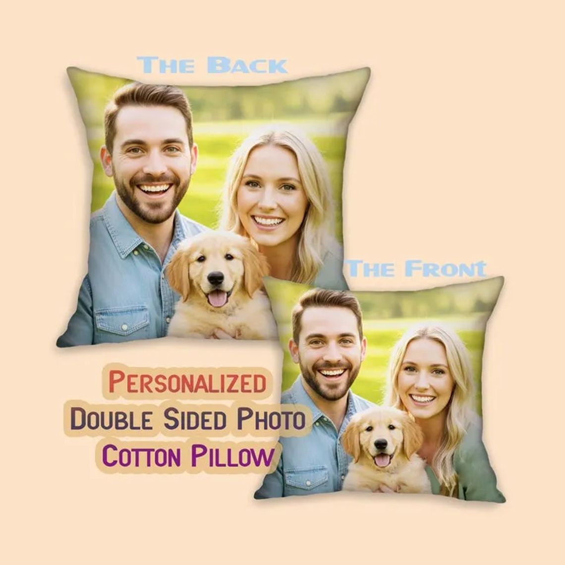 Custom Two Photos Cotton Pillow Personalized Double sided Photo Cushion Cover Decorative Throw Pillows Photo Gift | GIFORUE