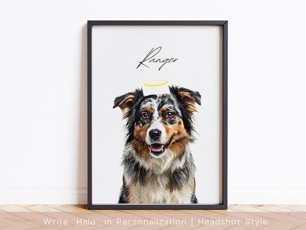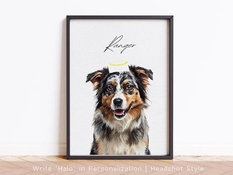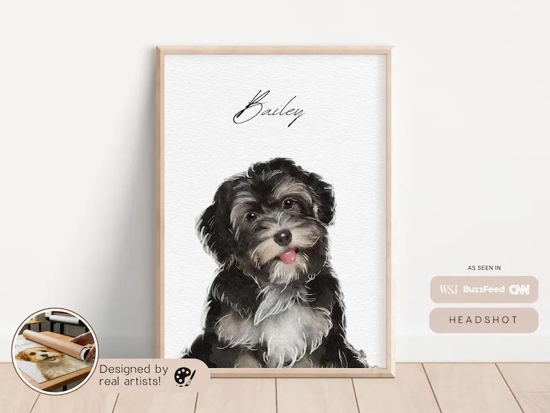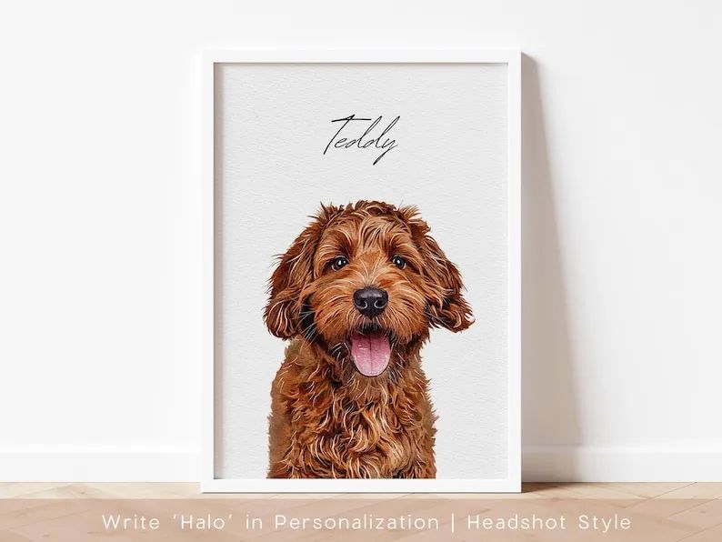 Celebrate the bond between you and your pet with this one of a kind, modern pet portrait that matches the aesthetic of any room. This pet portrait featuring your best friend will become a statement piece of your room and most definitely a conversation starter while matching your décor perfectly. This tastefully designed pet portrait that includes your PET NAME can be purchased for your home, ideal gift for dog lovers, pet sympathy or remembrance gift, and more! Comes in a variety of sizes and different styles to fit any taste: (digital copy, poster, white frame or black frame). Your pet is created on thick museum-quality, matte posters which provides your pet portrait a more polished look.