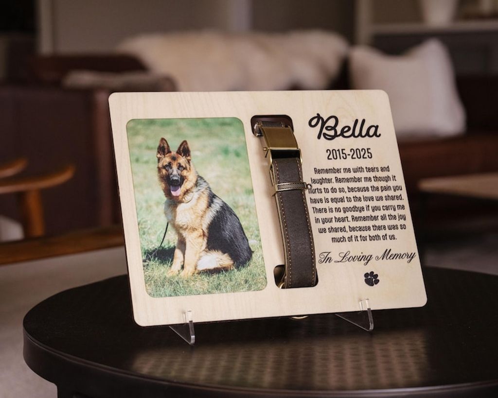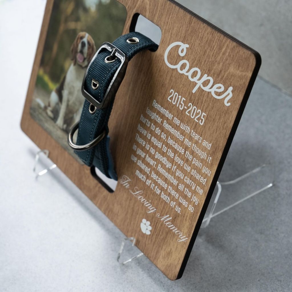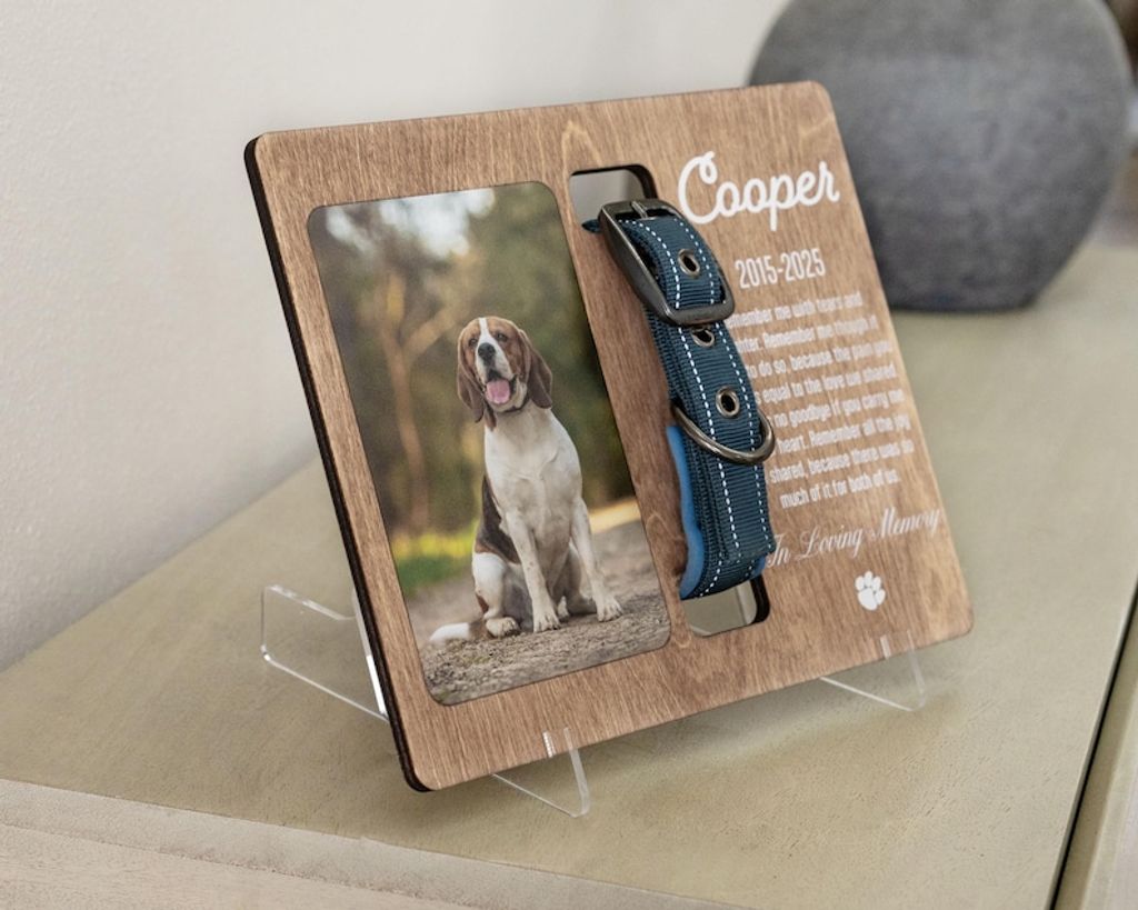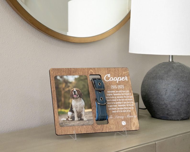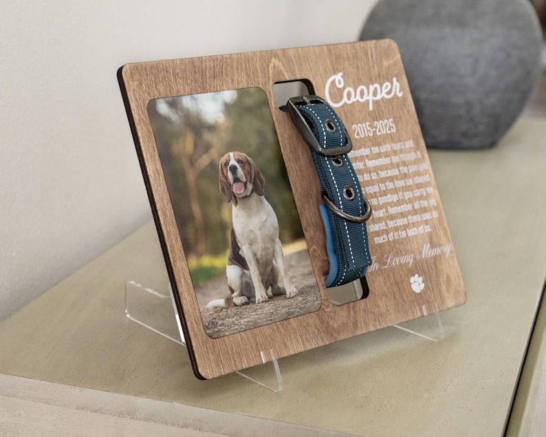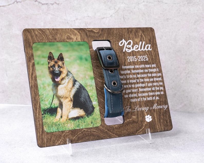 Personalized Pet Memorial Frame - Custom Dog Collar Holder with Photo - Pet Loss Sympathy Gift - Dog Remembrance Keepsake